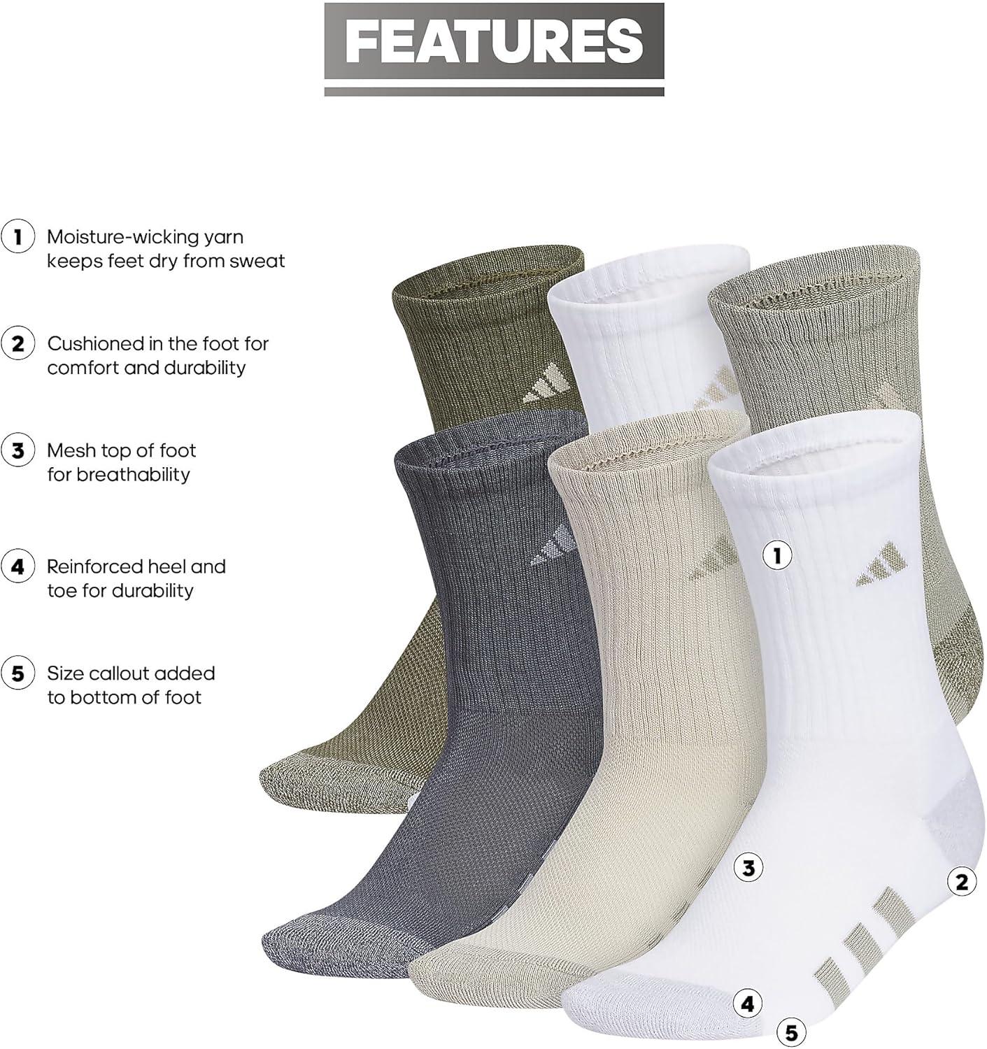 adidas Unisex Kids Crew Socks for Boys and Girls Youth (6-pack) Athletic Cushioned and Comfortable, Tall Mid-calf(Silver Pebble Grey/Putty Grey/White)