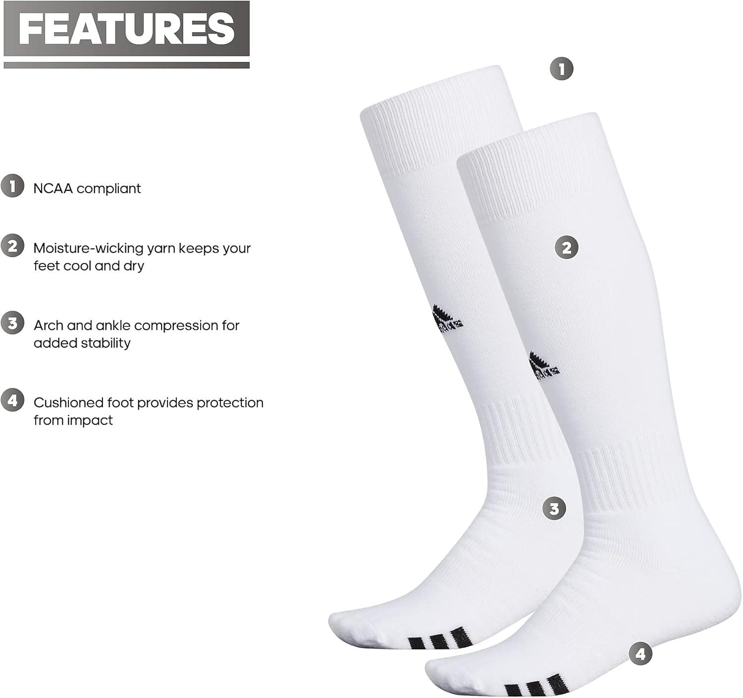 adidas Unisex Rivalry Field Compression Sport Socks for Men, Women, Athletic Socks, Moisture-Wicking, NCAA Compliant, 2-Pack(White/Black)