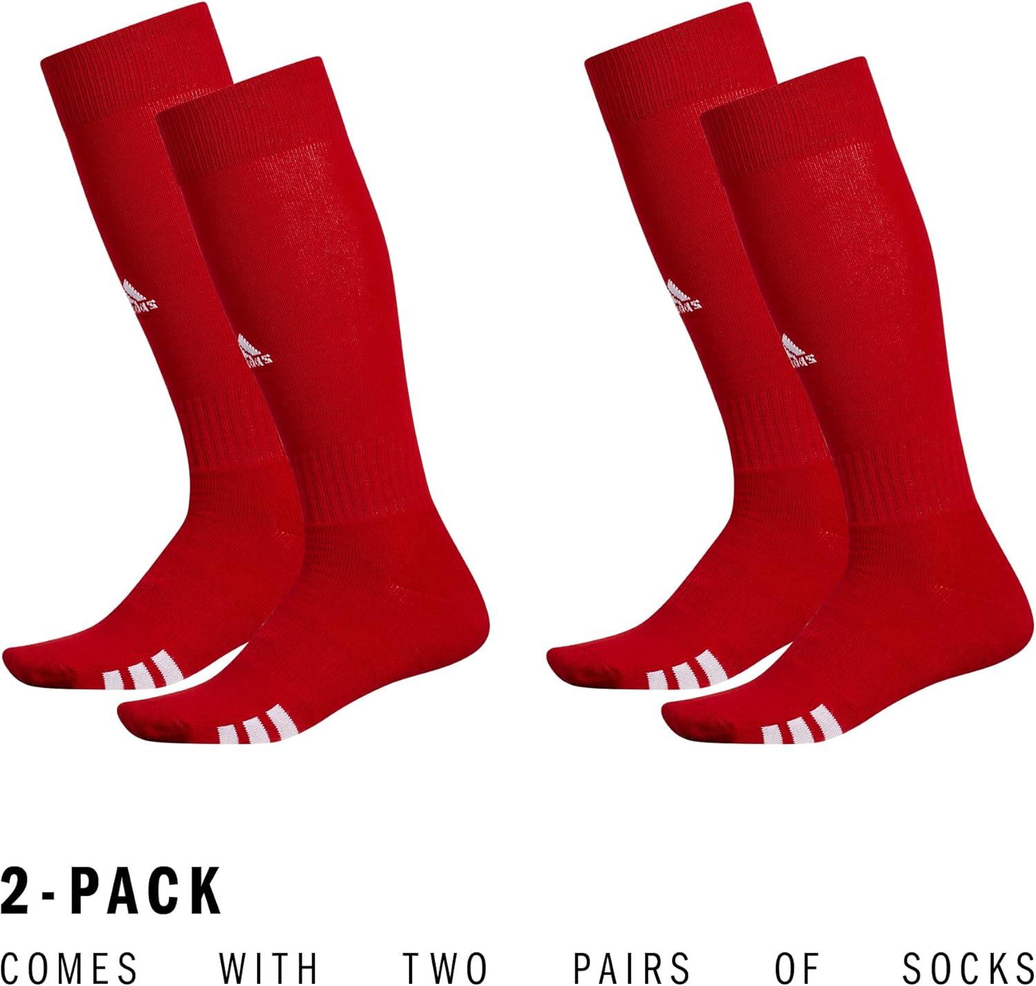 adidas Unisex Rivalry Soccer Socks (2-Pack) Over-the-Calf Athletic Fit for Men & Women(Power Red/White)