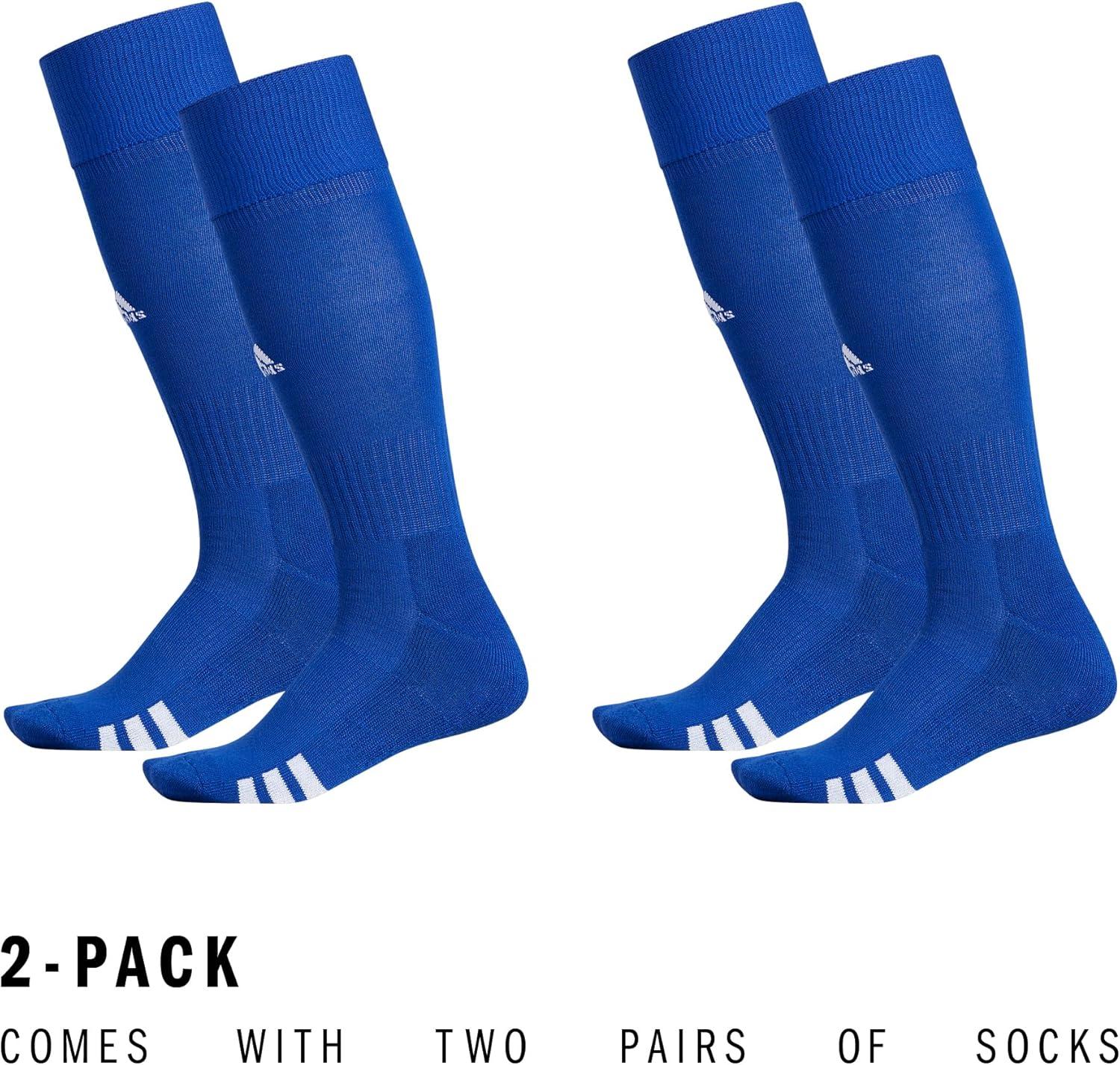 adidas Unisex Rivalry Soccer Socks (2-Pack) Over-the-Calf Athletic Fit for Men & Women(Royal Blue/White)