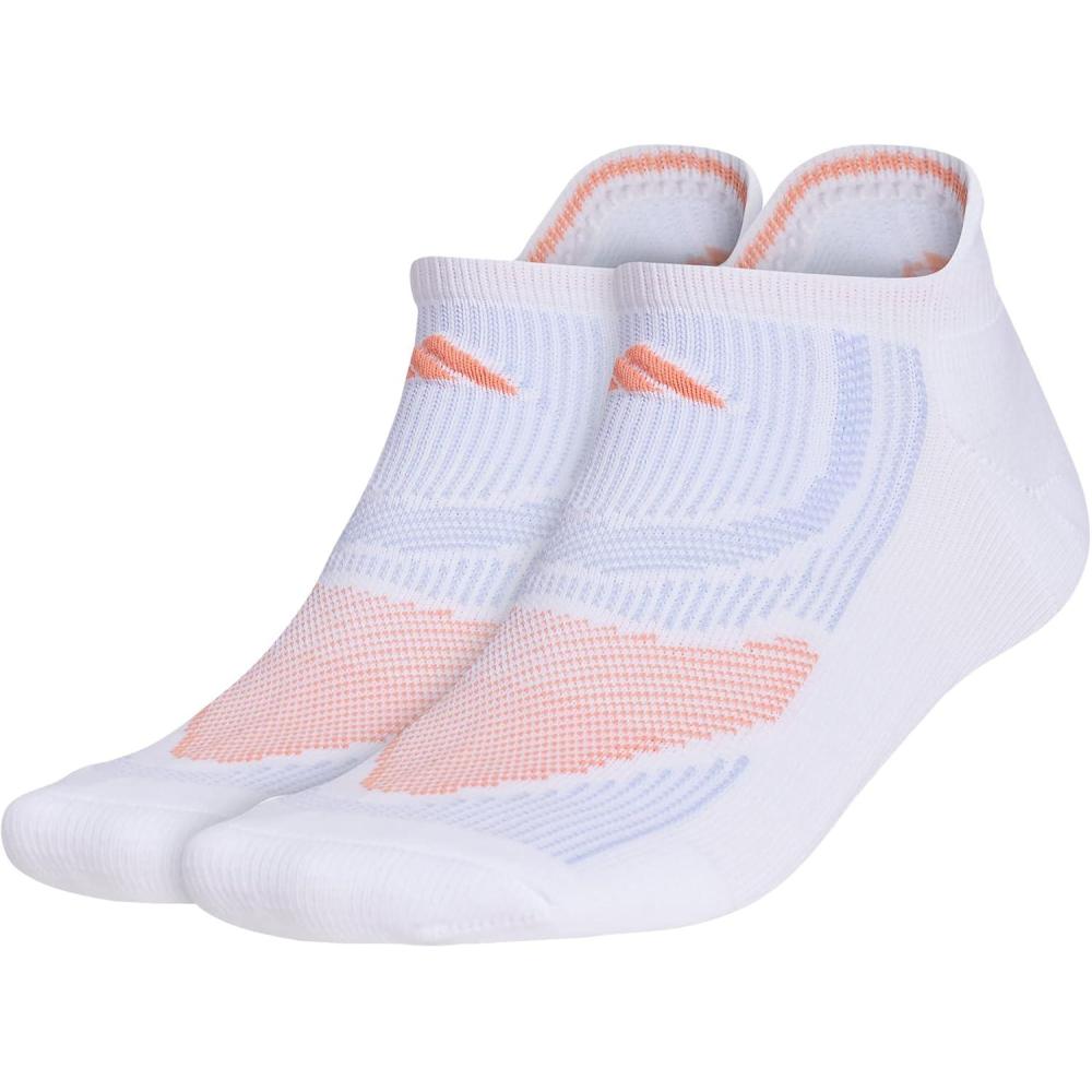 adidas Unisex Superlite Performance Tabbed No Show Running Socks with achilles protection (2-Pair)(White/Blue Dawn/Coral Fusion Pink)