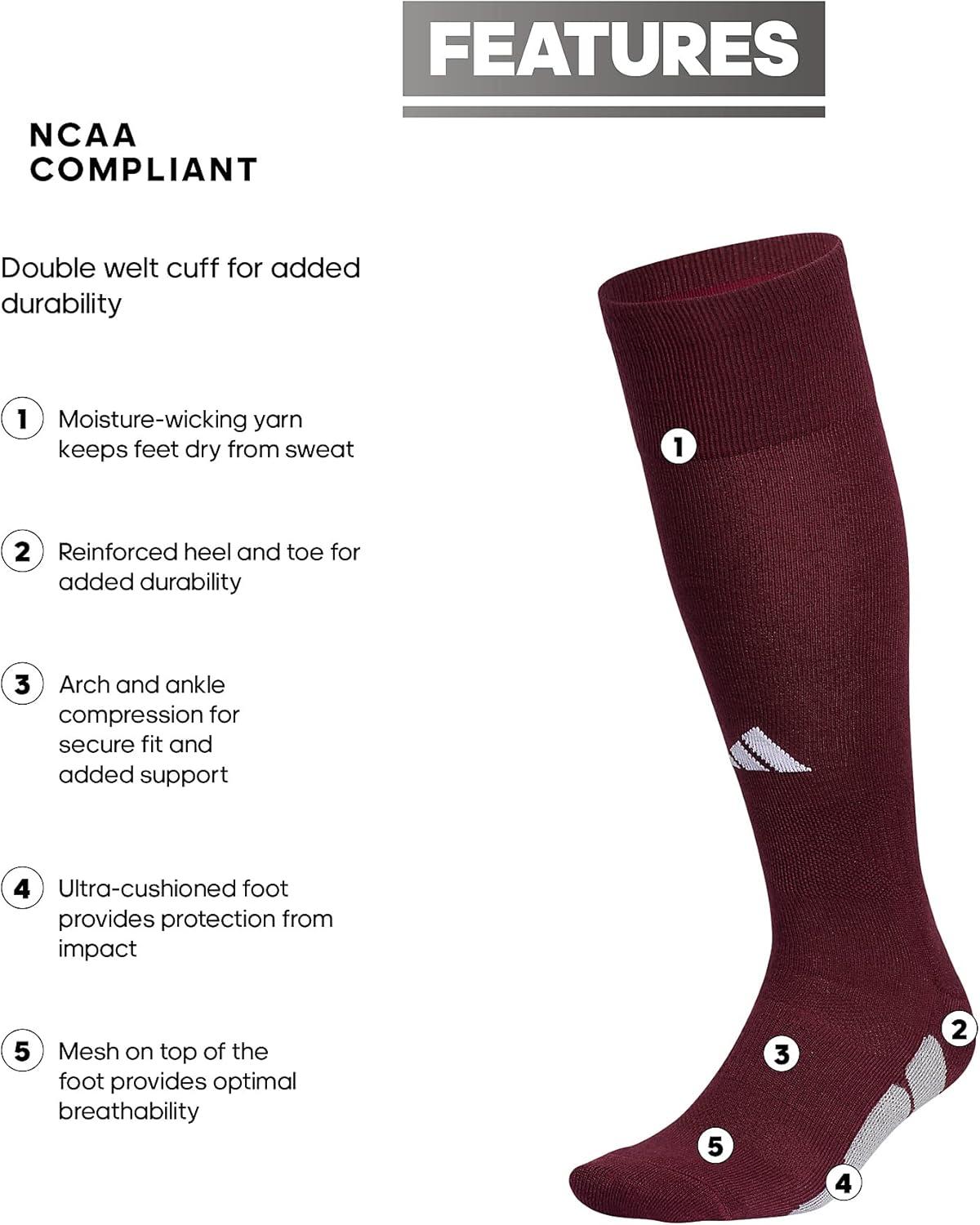 adidas Unisex Utility All Sport Compression Socks, Sports Socks for Men, Women, Youth Boys and Girls, NCAA Compliant, 1-Pack(Team Maroon/White/2)