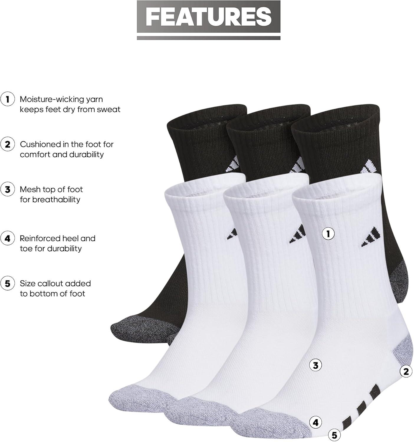 adidas Unisex Youth Athletic Cushioned 6-Pack, Crew Socks Kids for Sports, Durable & Breathable(White/Black/White)