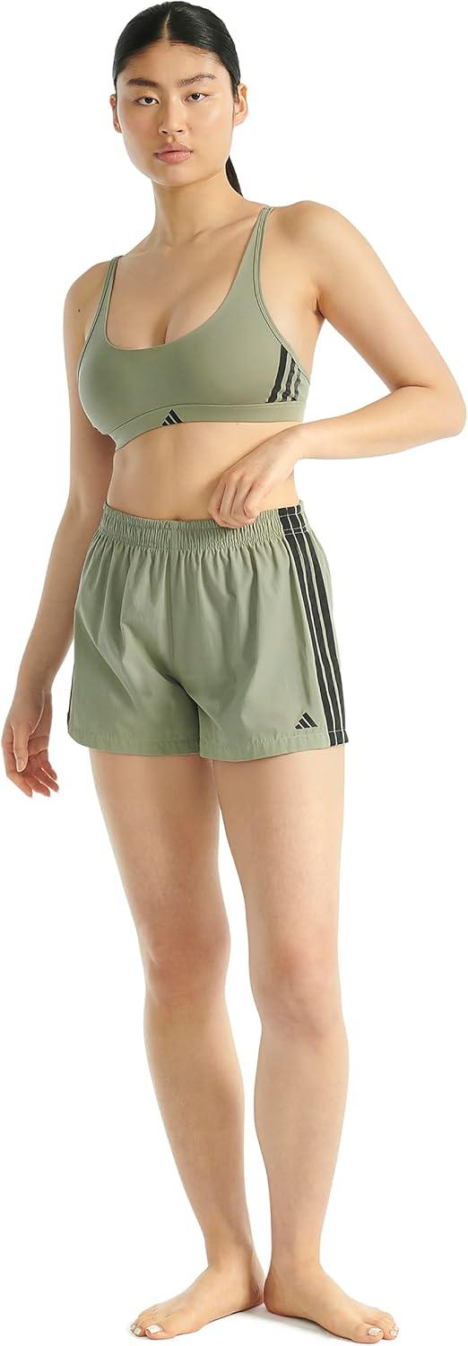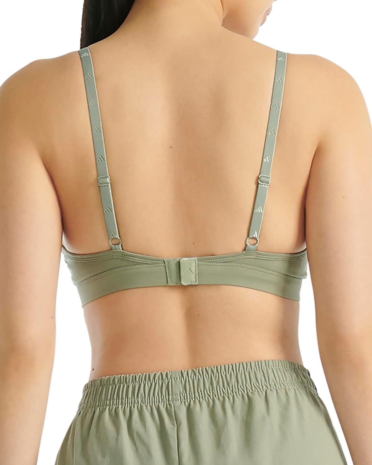 Adidas Women’s 3 Stripes Active Essentials Cotton Scoop Bralette with Removable Cookies(Silver Pebble)