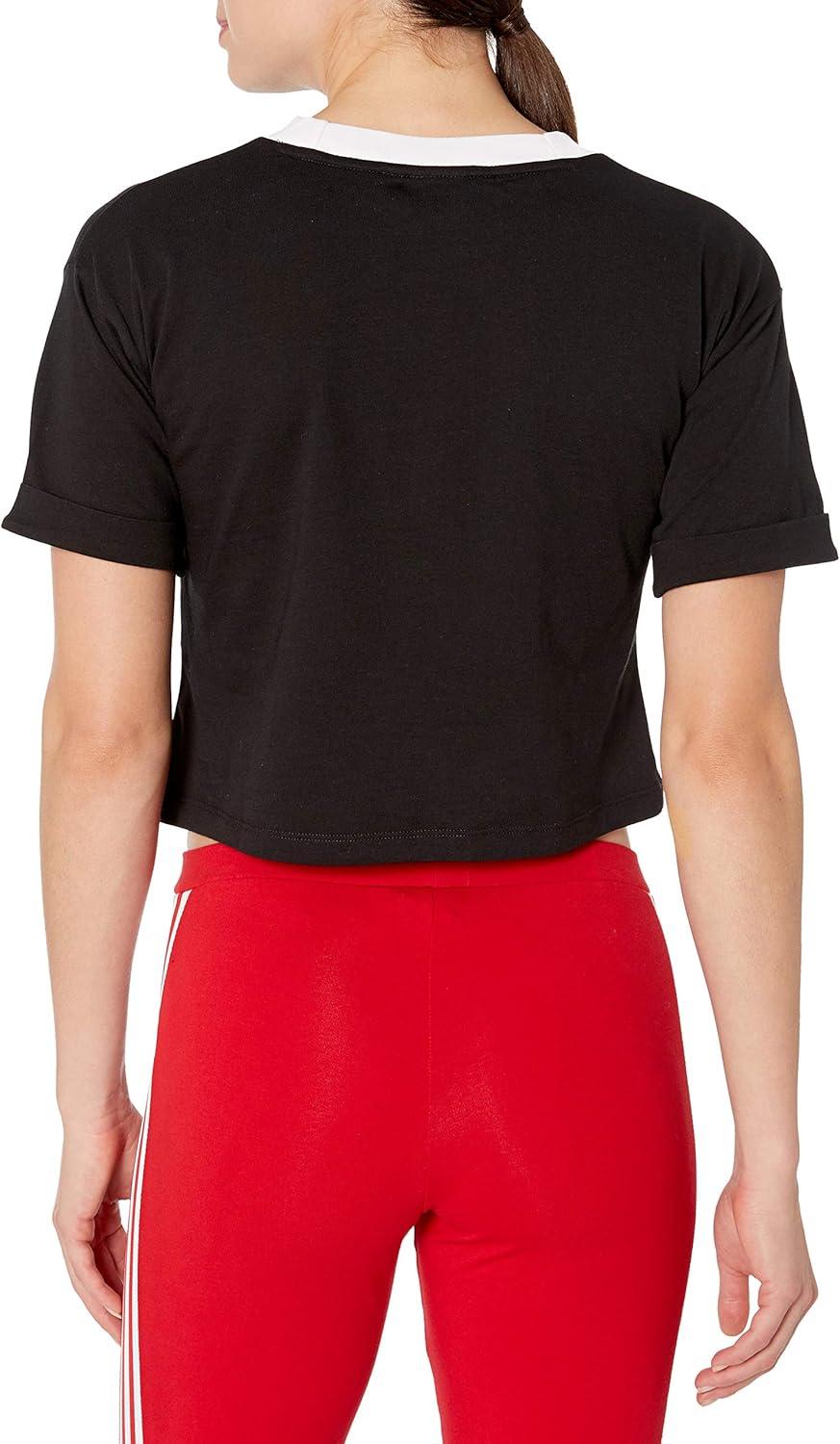 adidas Womens Adicolor Essentials Rib Cropped Crew Neck Short Sleeve Casual Tops Casual – Black(Black/White)