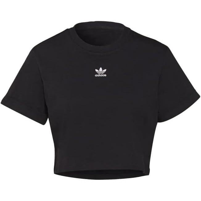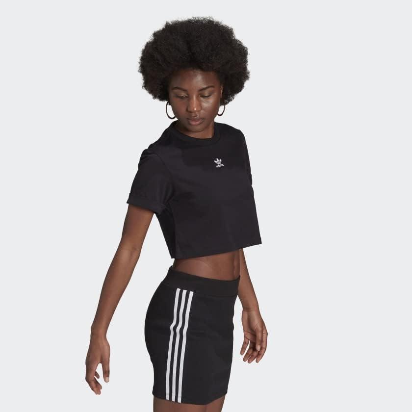adidas Womens Adicolor Essentials Rib Cropped Crew Neck Short Sleeve Casual Tops Casual – Black(Black)
