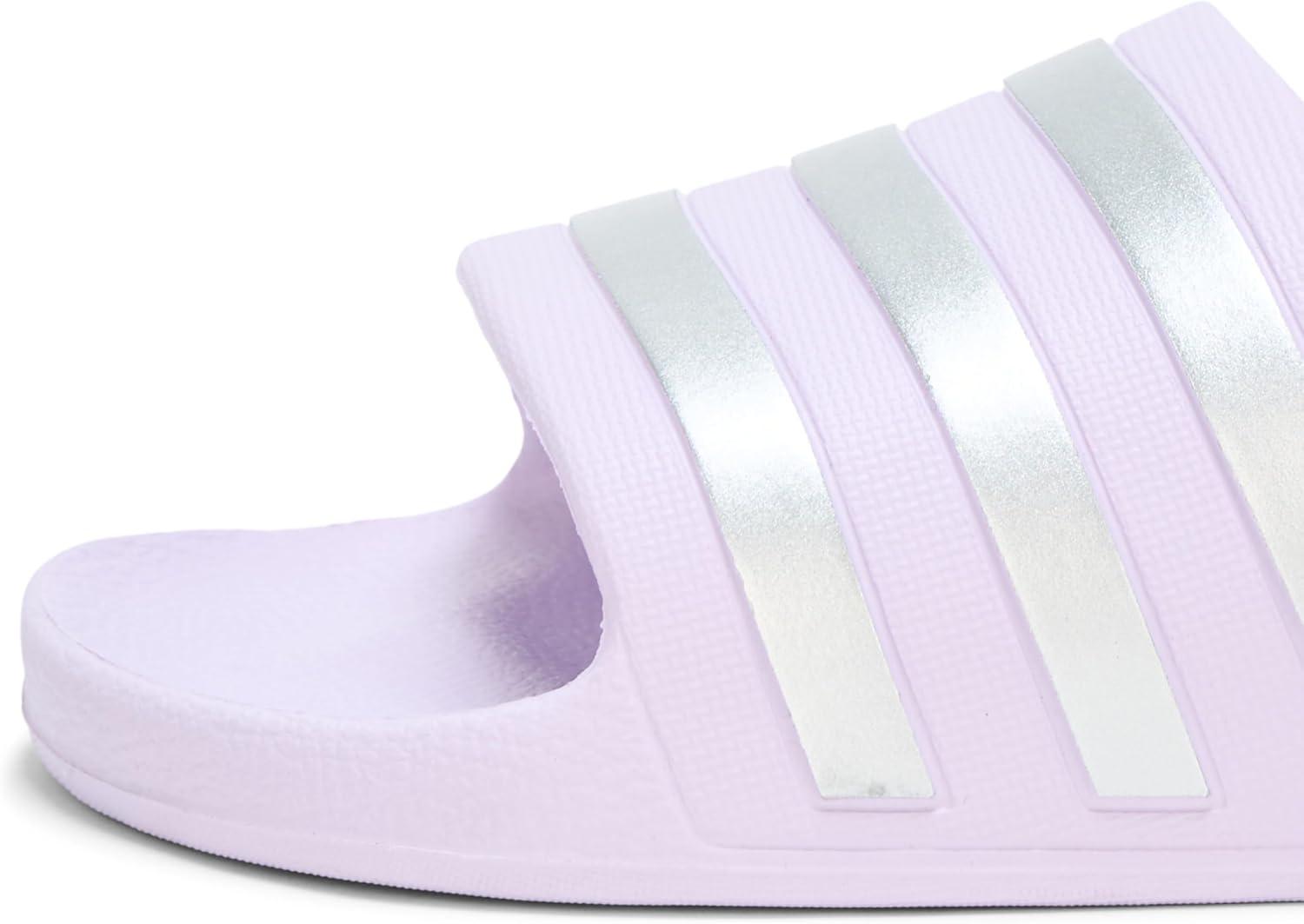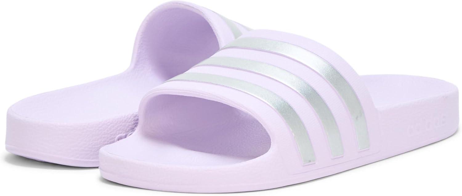 adidas Women’s Adilette Aqua Slide Sandal(Ice Lavender/Matte Silver/Matte Silver)