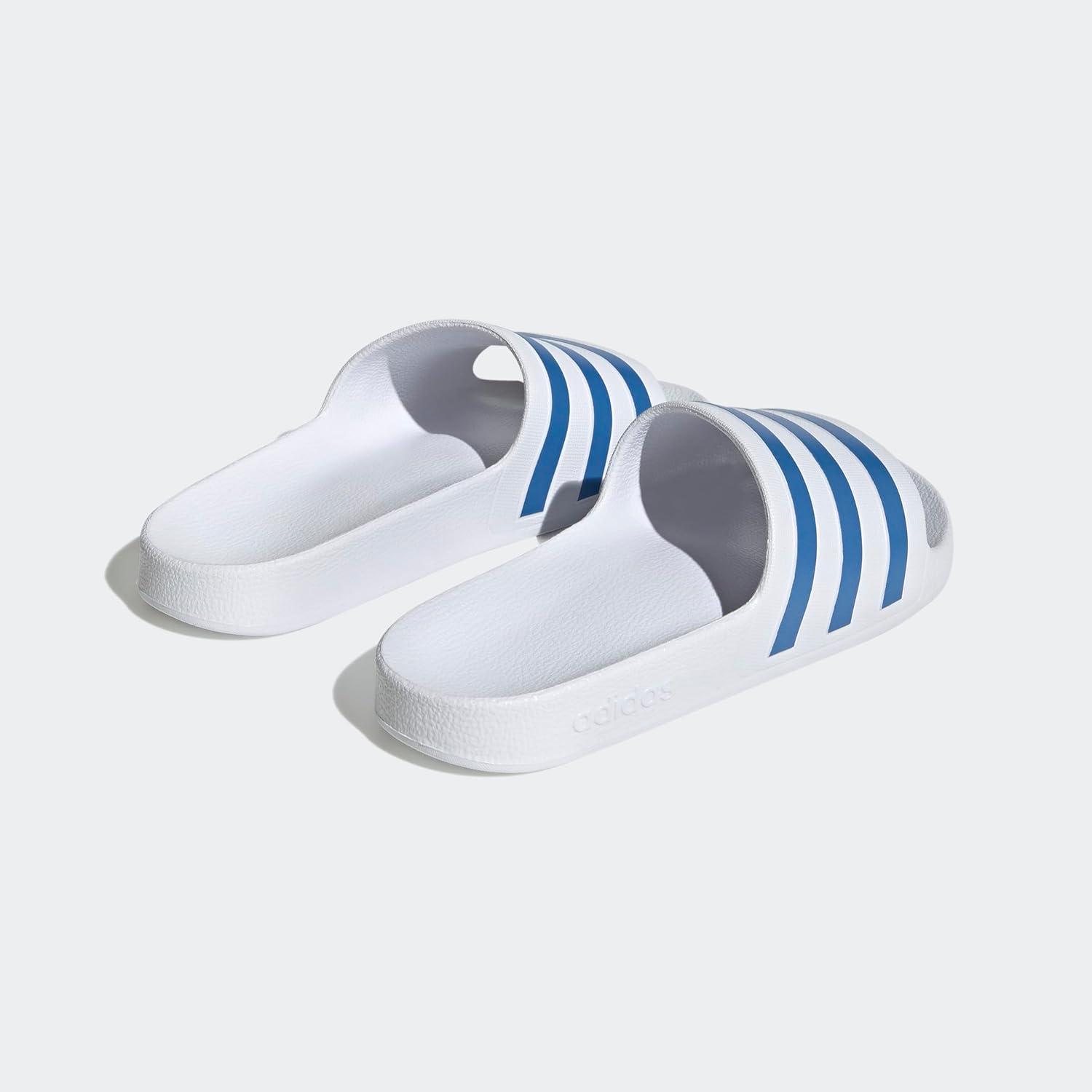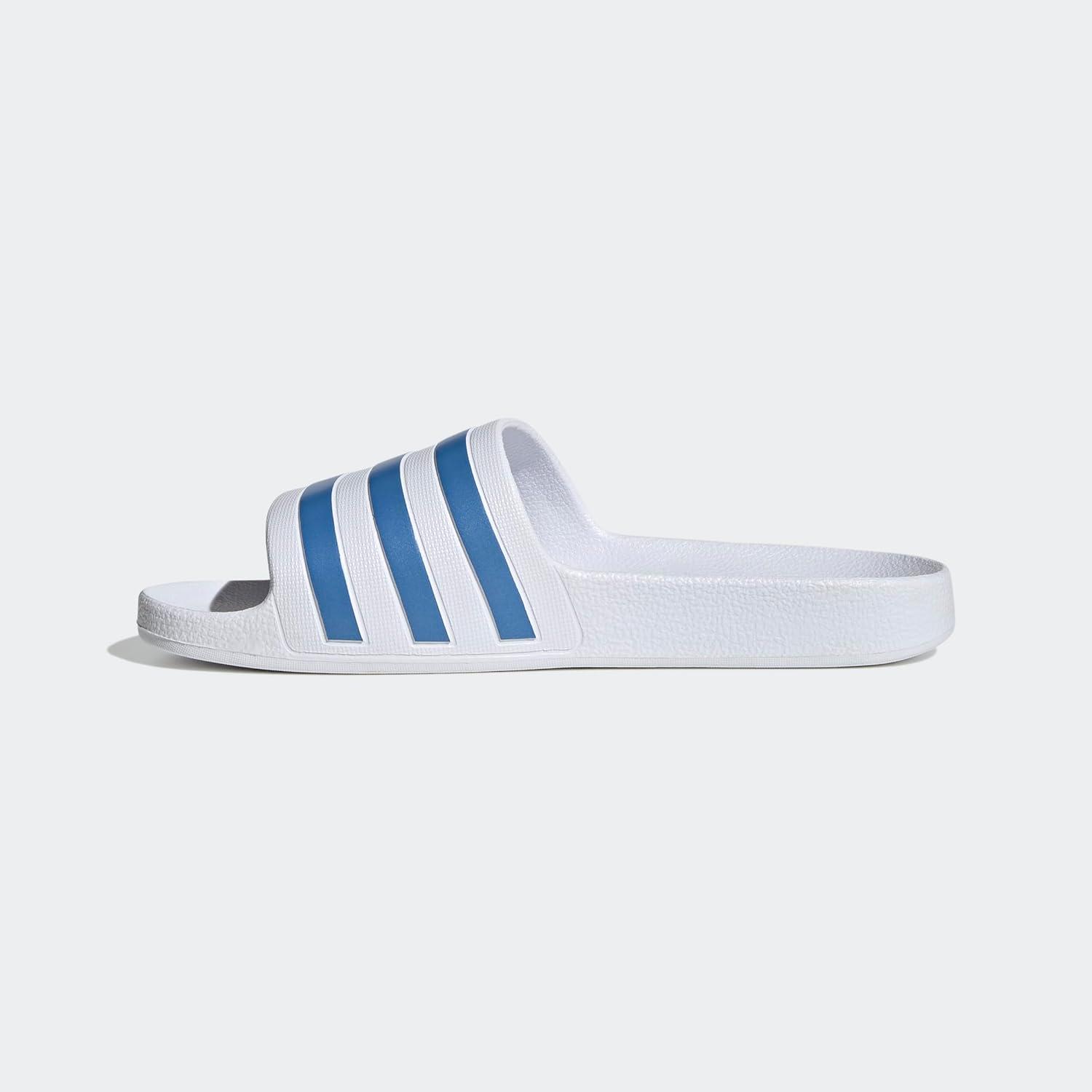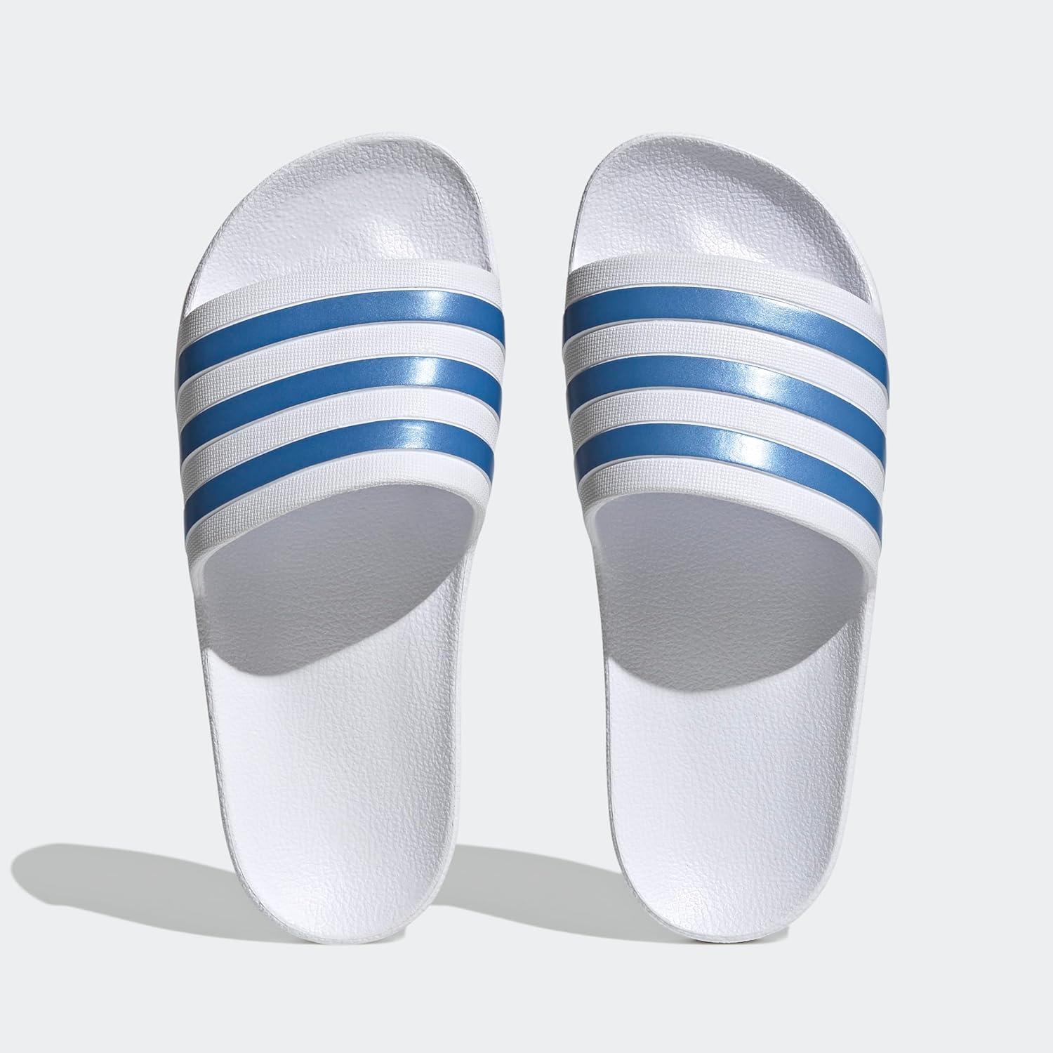 adidas Women’s Adilette Aqua Slide Sandal(White/Blue Fusion Metallic/White)