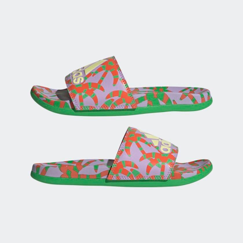 adidas Women’s Adilette Comfort Slide Sandal(Purple Glow/Pearl Citrine/Semi Flash)