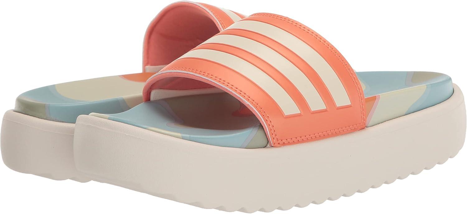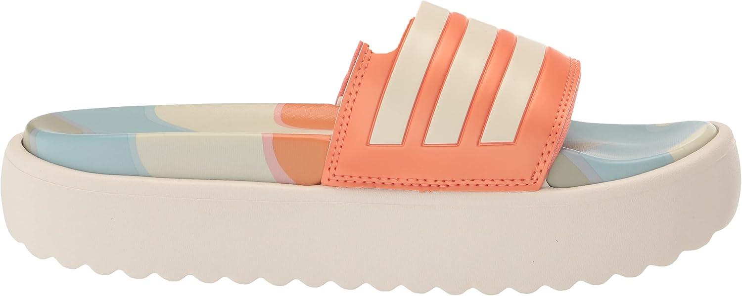 adidas Women’s Adilette Platform Sandal(White/White/Semi Coral)
