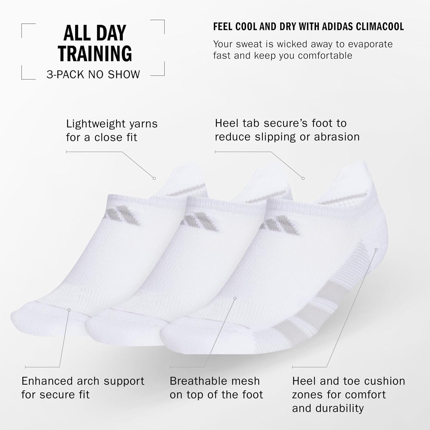 adidas Women’s All Day Training No Show Socks (3-Pair) athletic performance below ankle height running socks(White/Clear Onix Grey/Clear Grey)