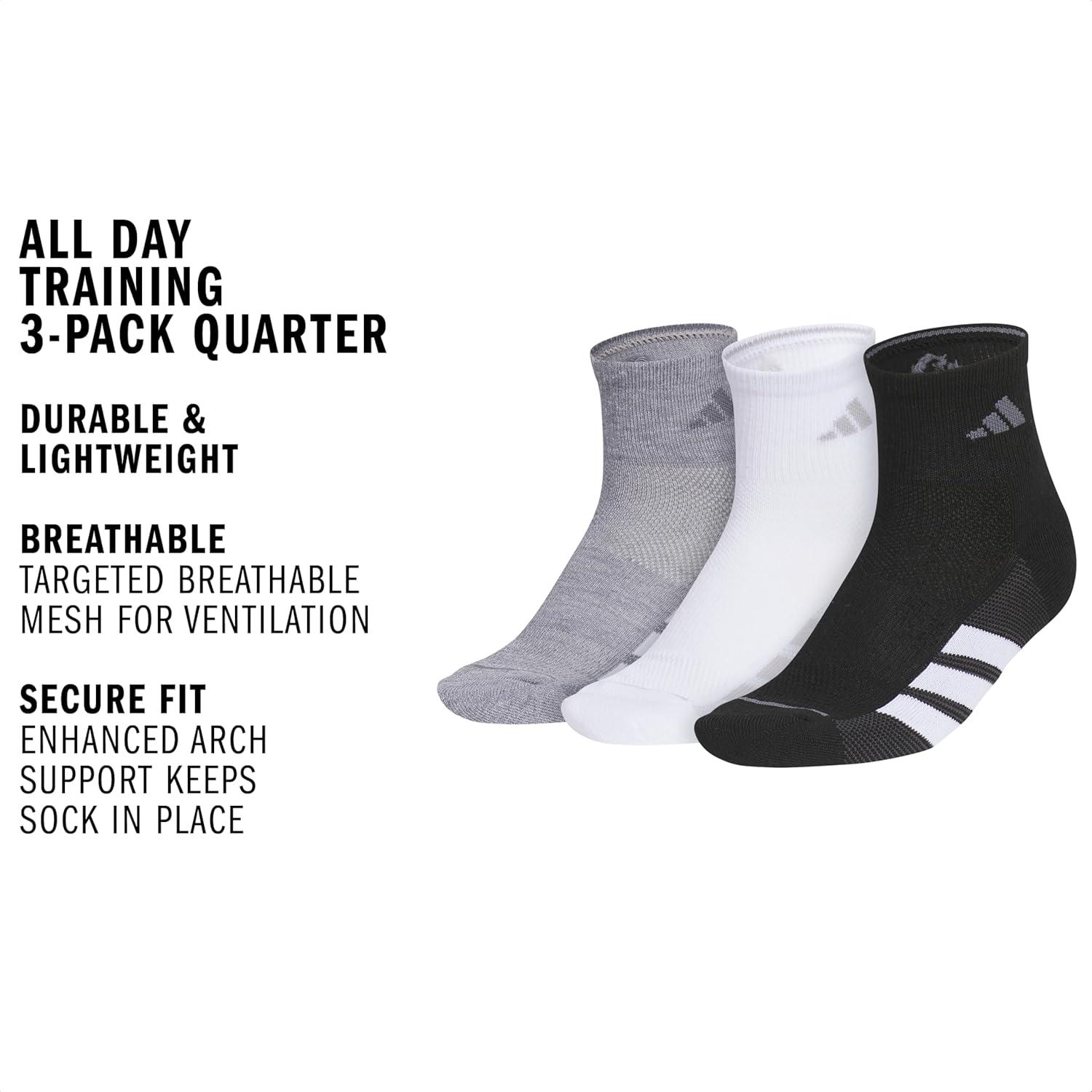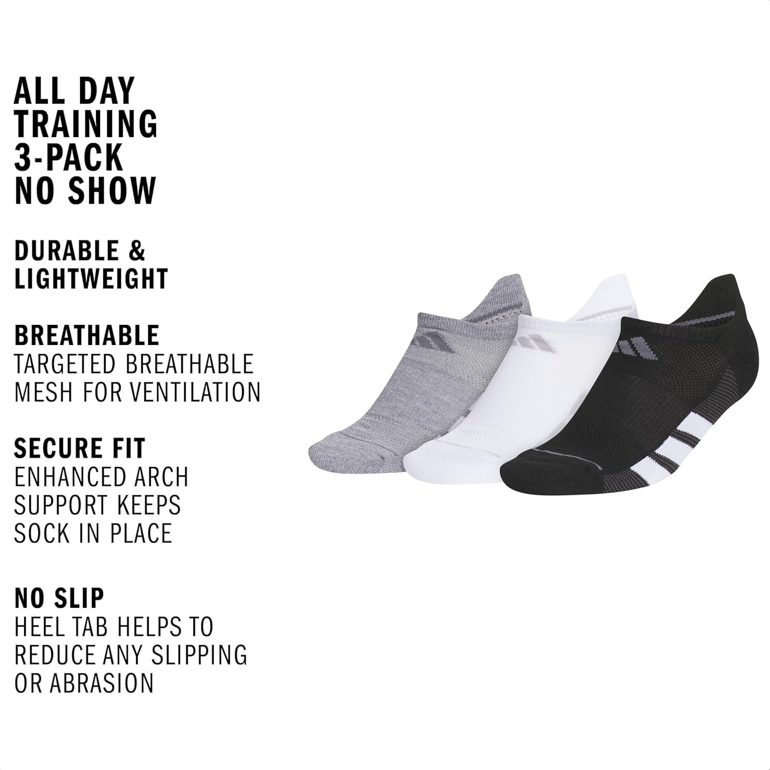 adidas Womens All Day Training Workout Socks (3 Pairs) Multiple Heights(Grey/White/Black)