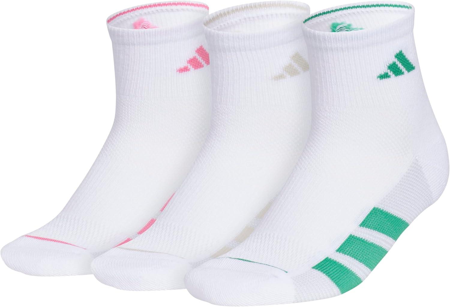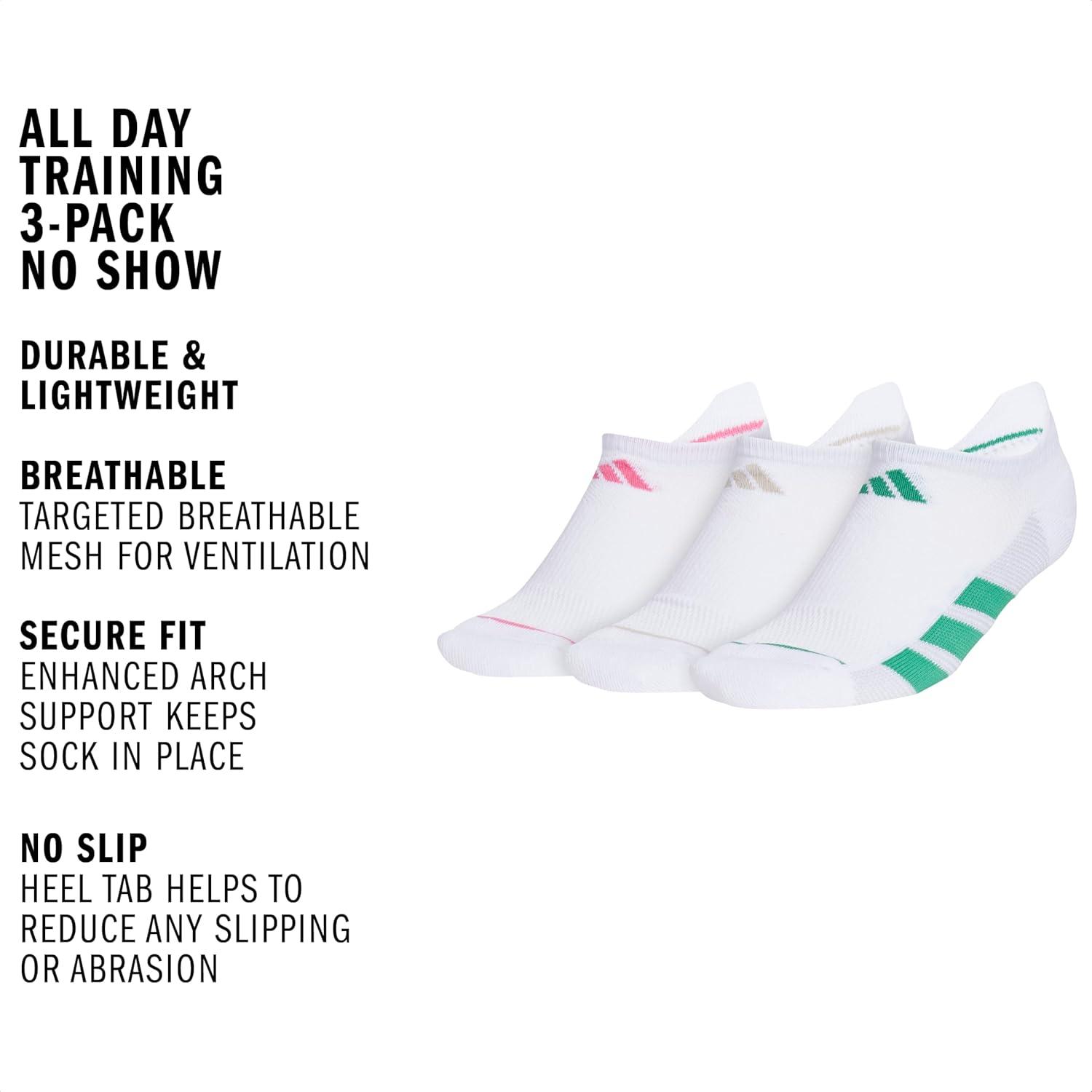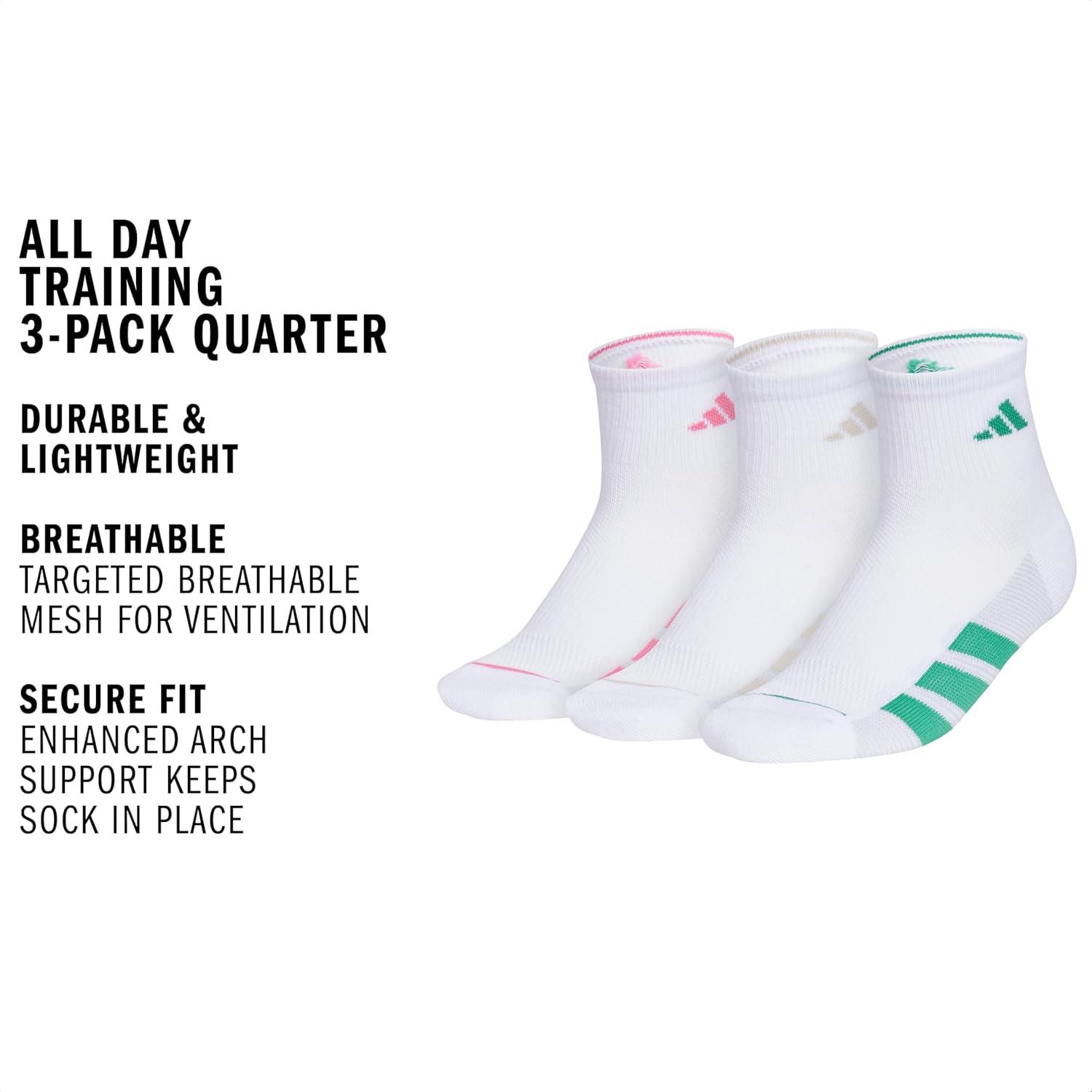 adidas Womens All Day Training Workout Socks (3 Pairs) Multiple Heights(White/Pink Fusion/Wonder Alumina Grey)