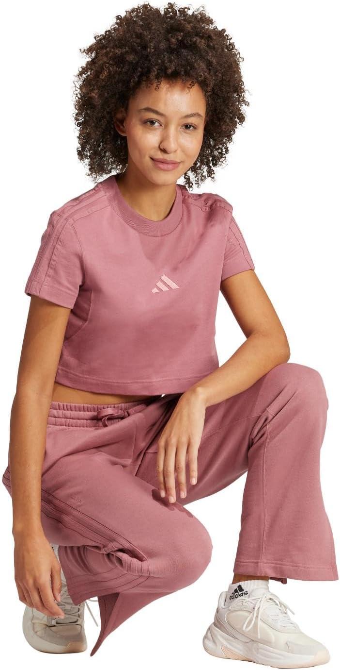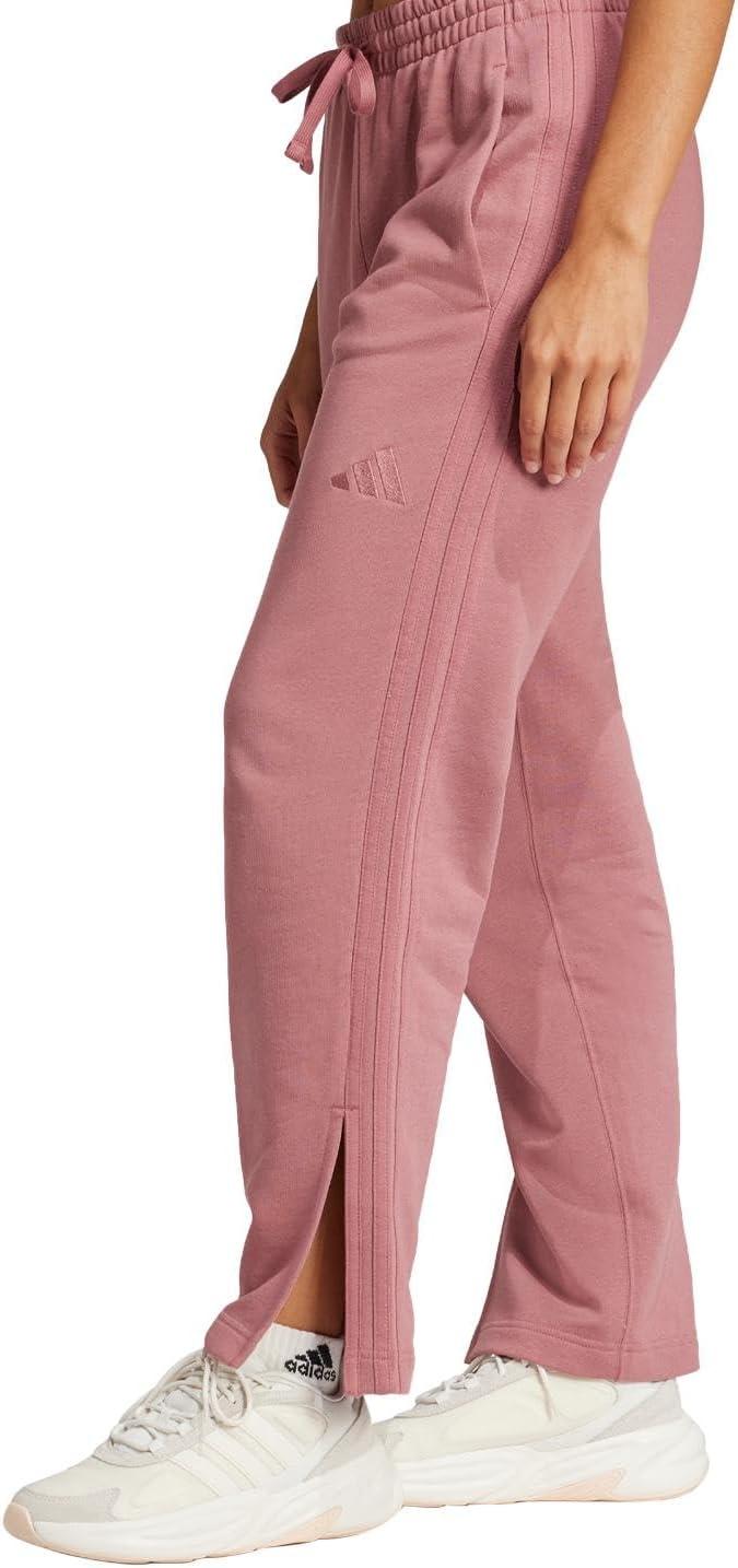 adidas Women’s All Szn French Terry 3-Stripes Straight Leg Pants(Preloved Crimson)