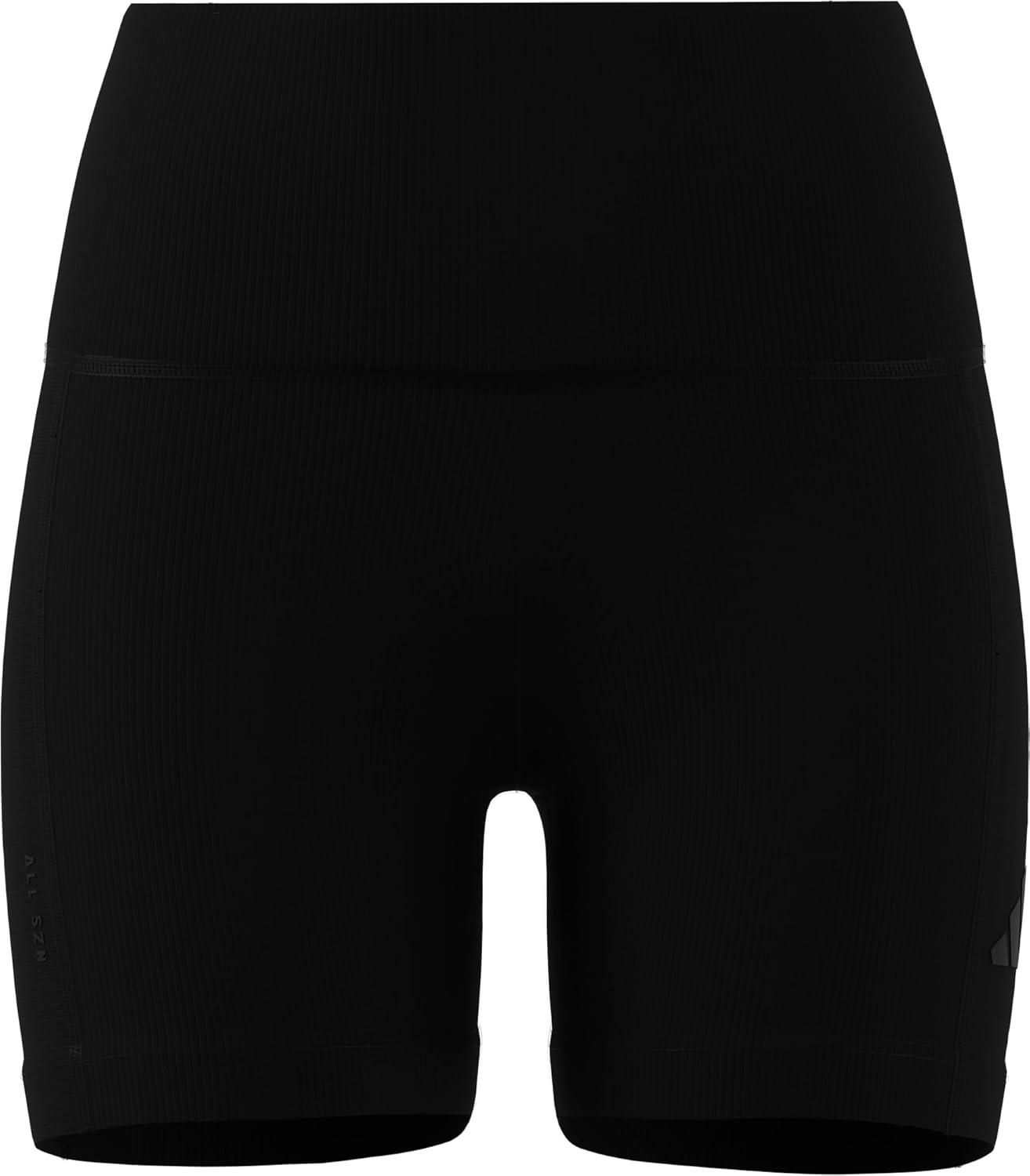 adidas Women’s All Szn Ribbed High-Waisted Bike Shorts(Black/Black)
