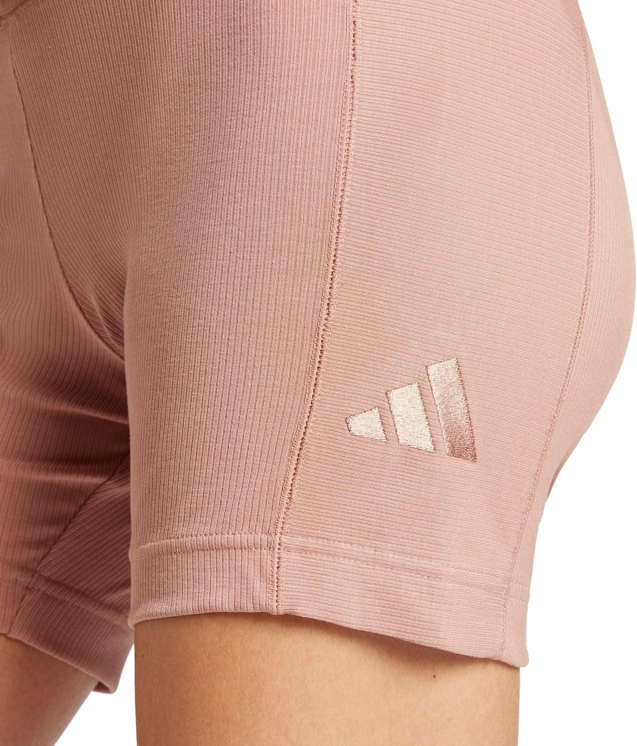 adidas Women’s All Szn Ribbed High-Waisted Bike Shorts(Warm Clay/Warm Clay)