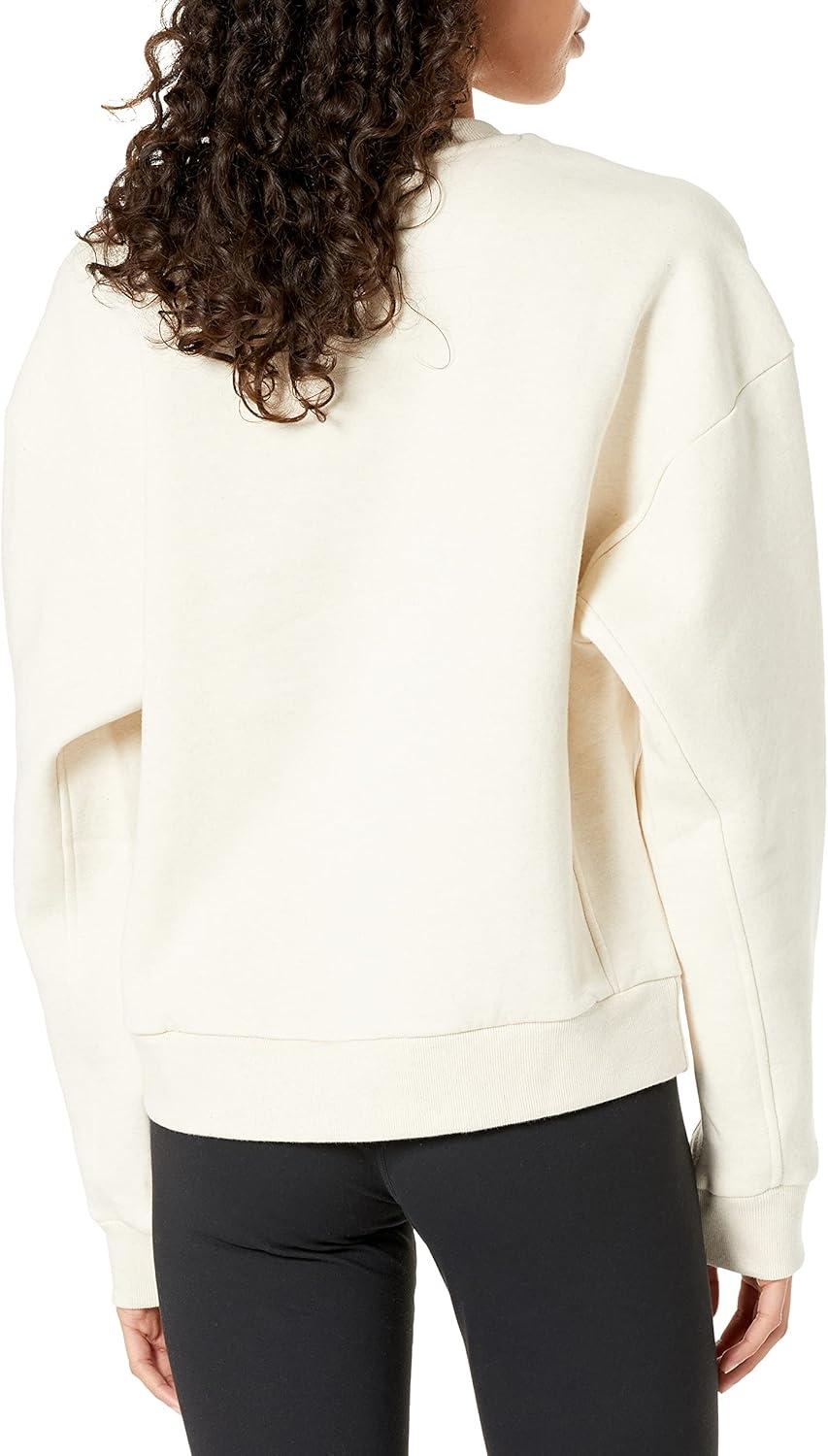 Take your lounging seriously in this women's adidas sweatshirt. It features ribbing on the crewneck, cuffs and hem for a snug fit and a cotton and polyester brushed-back fleece build that's soft and warm. It's cut a bit loose to keep you moving without any restrictions even if you're just going from the couch to the kitchen.