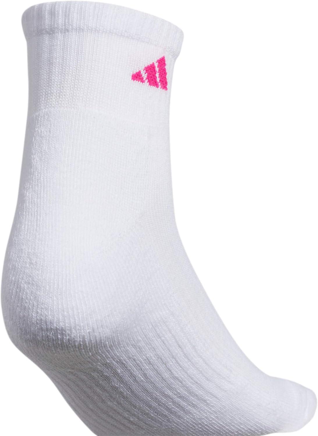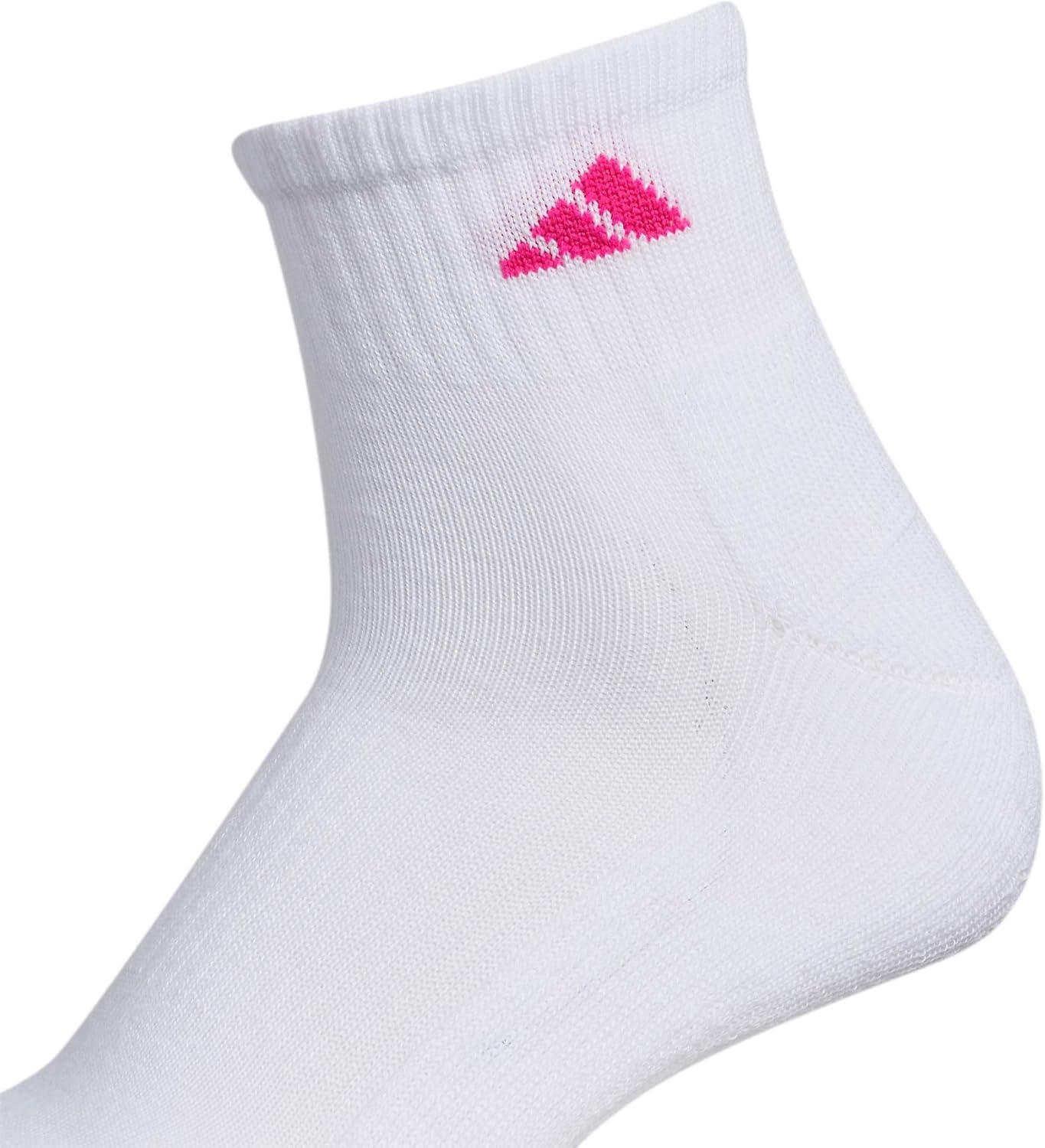 adidas Women’s Ankle Socks, Athletic Cushioned Quarter Fit, 6-Pack, Durable, Comfortable, Cooling, with Compression(White/Shock Pink/Bright Cyan)