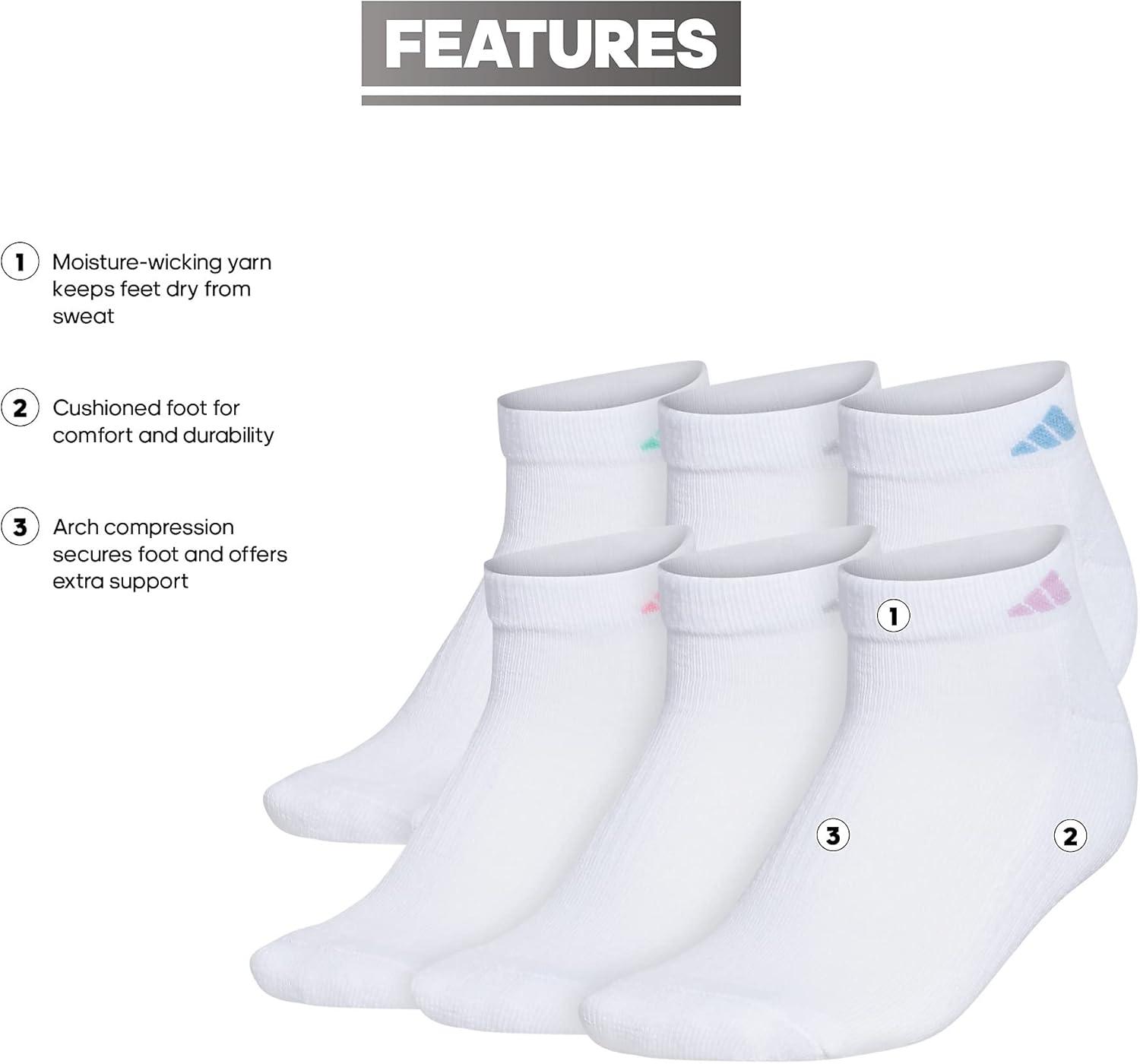 adidas Women’s Athletic Cushioned 6-Pack Low Cut(White/Clear Sky Blue/Bliss Lilac Purple)