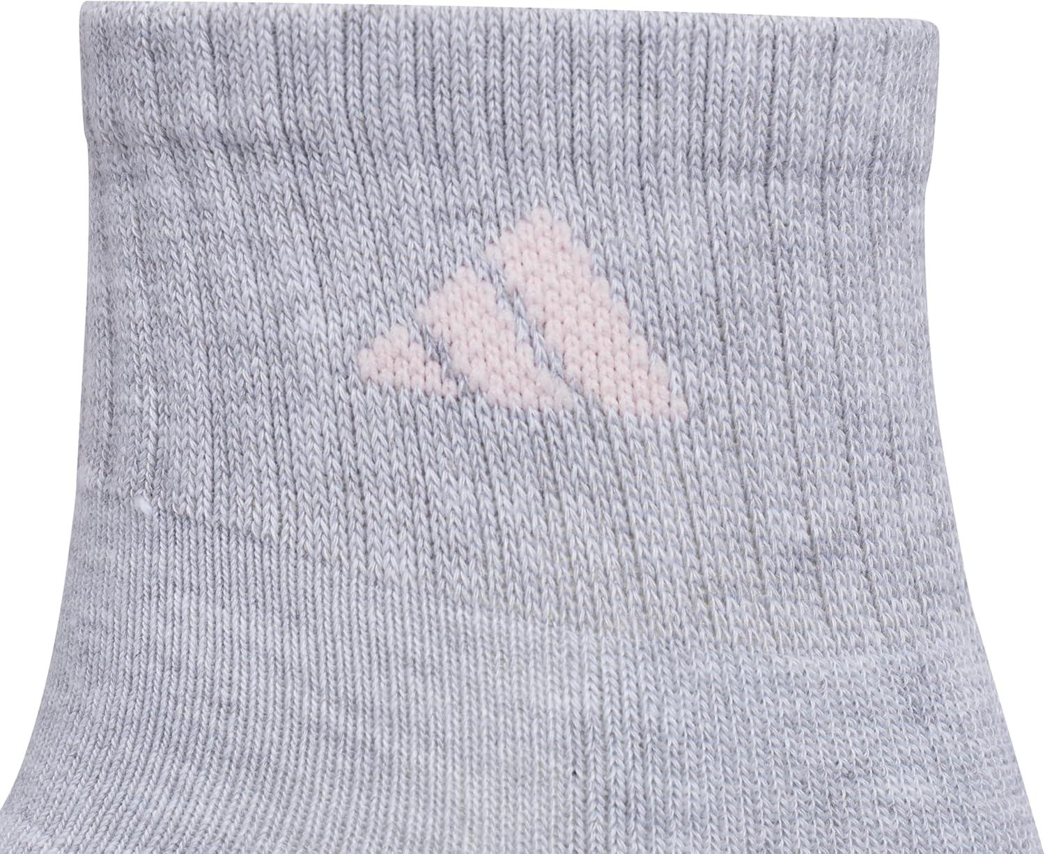 adidas womens Athletic Cushioned Quarter Socks With Arch Compression (6-pair)(Cool Light Heather/Clear Pink/Dark Blue)