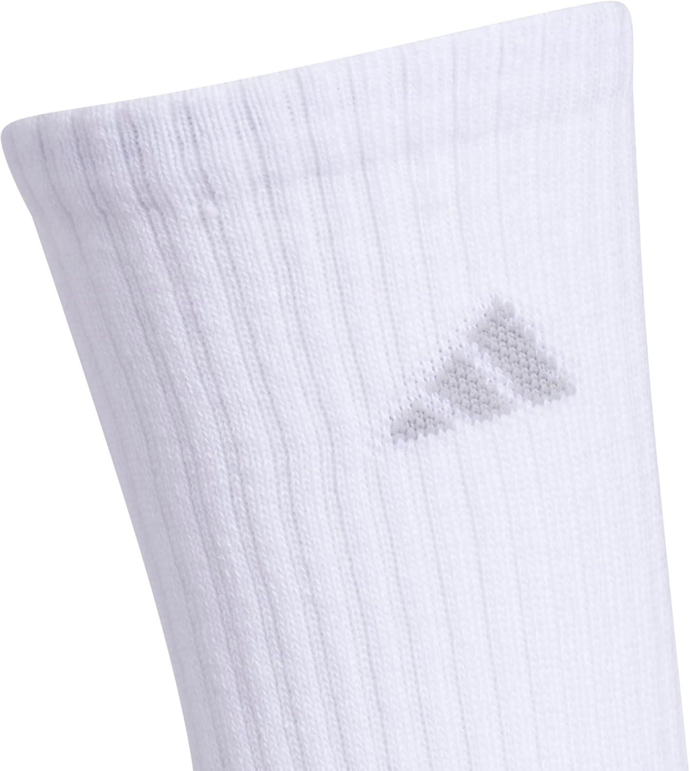 adidas womens Cushioned Crew Socks (3-pair) With Arch Compression(White/Clear Onix Grey)