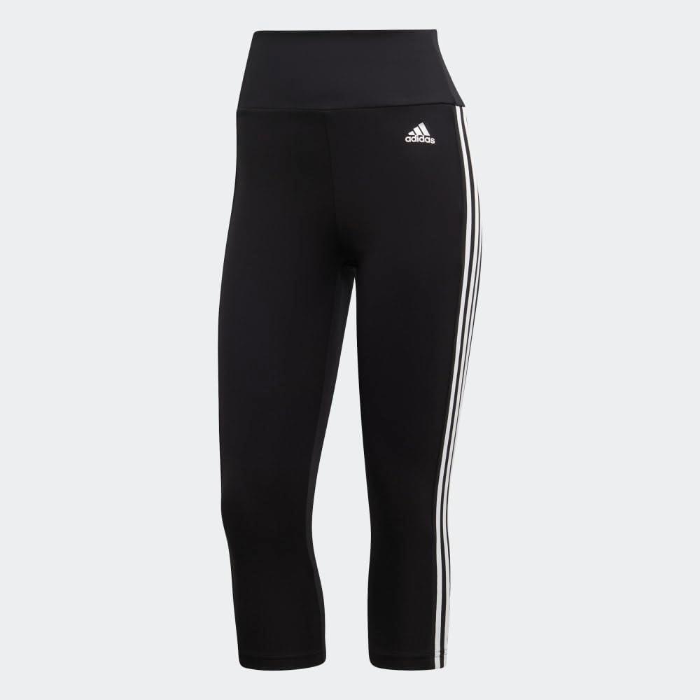 adidas Women’s Designed 2 Move High-rise 3-Stripes 3/4 Sport Tights(Black/White)