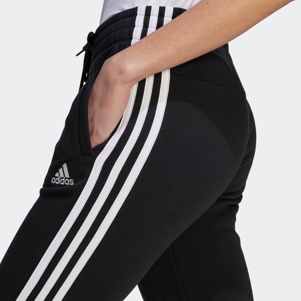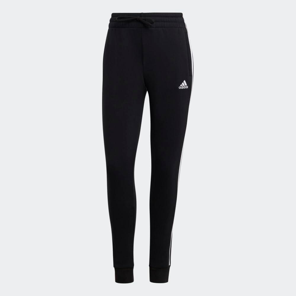 adidas Womens Essentials 3-Stripes Fleece Pants(Black/White)