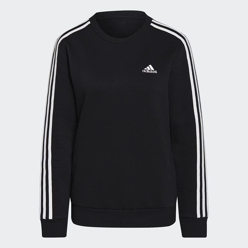adidas Women’s Essentials 3-Stripes Fleece Sweatshirt(Black/White)