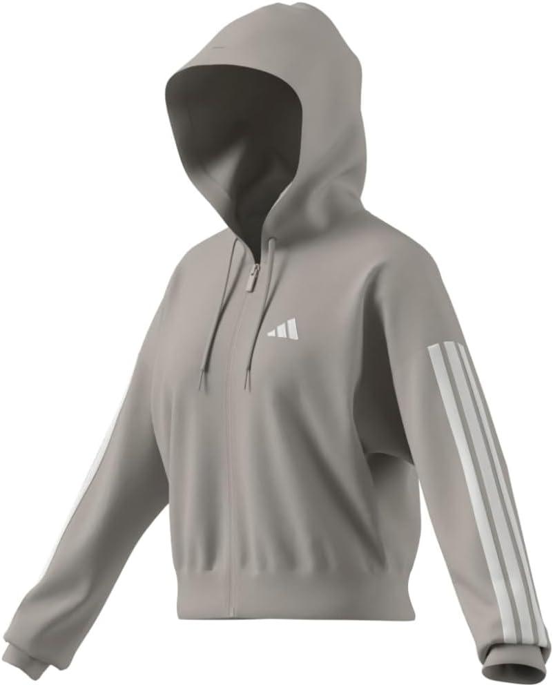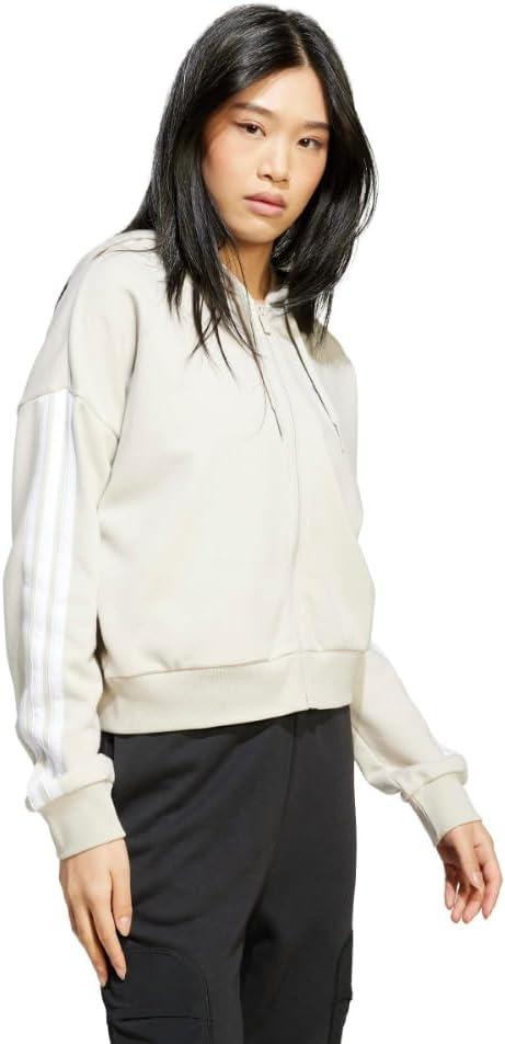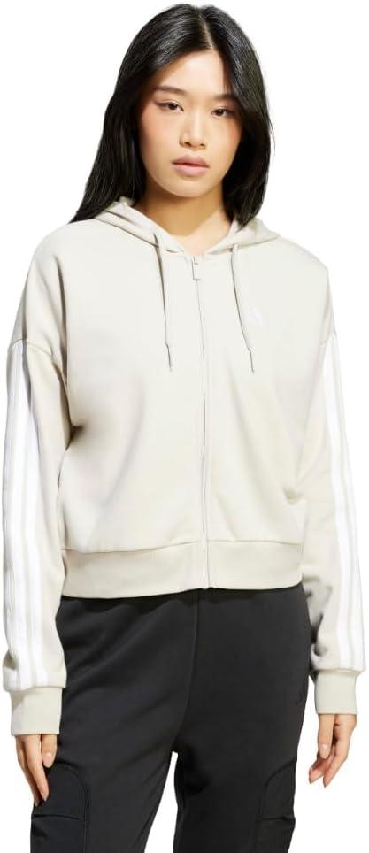 adidas womens Essentials 3-stripes French Terry Full-zip Hoodie(Wonder Alumina/White)