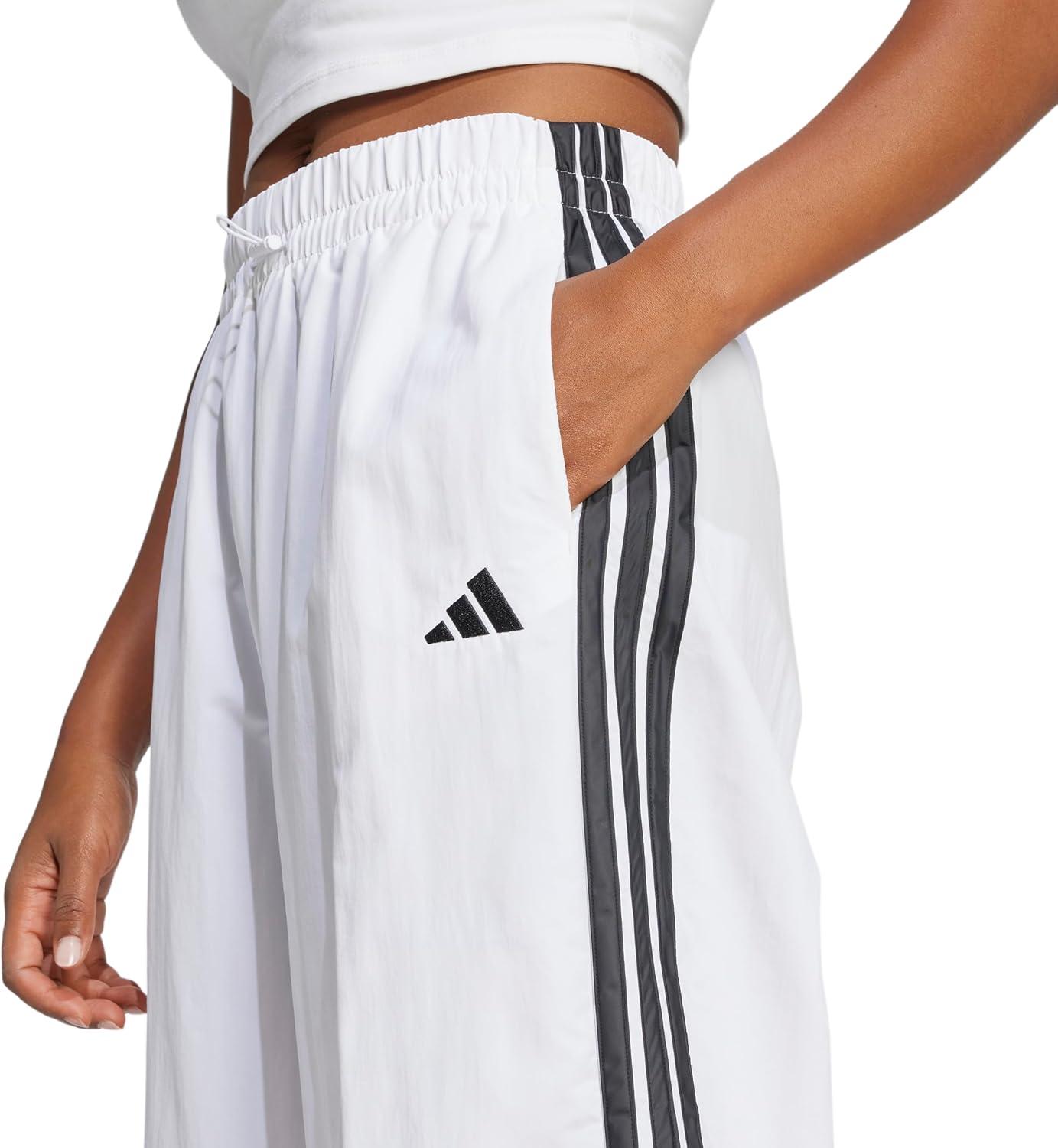 adidas Womens Essentials 3-Stripes Woven Parachute Pants(White/Black)