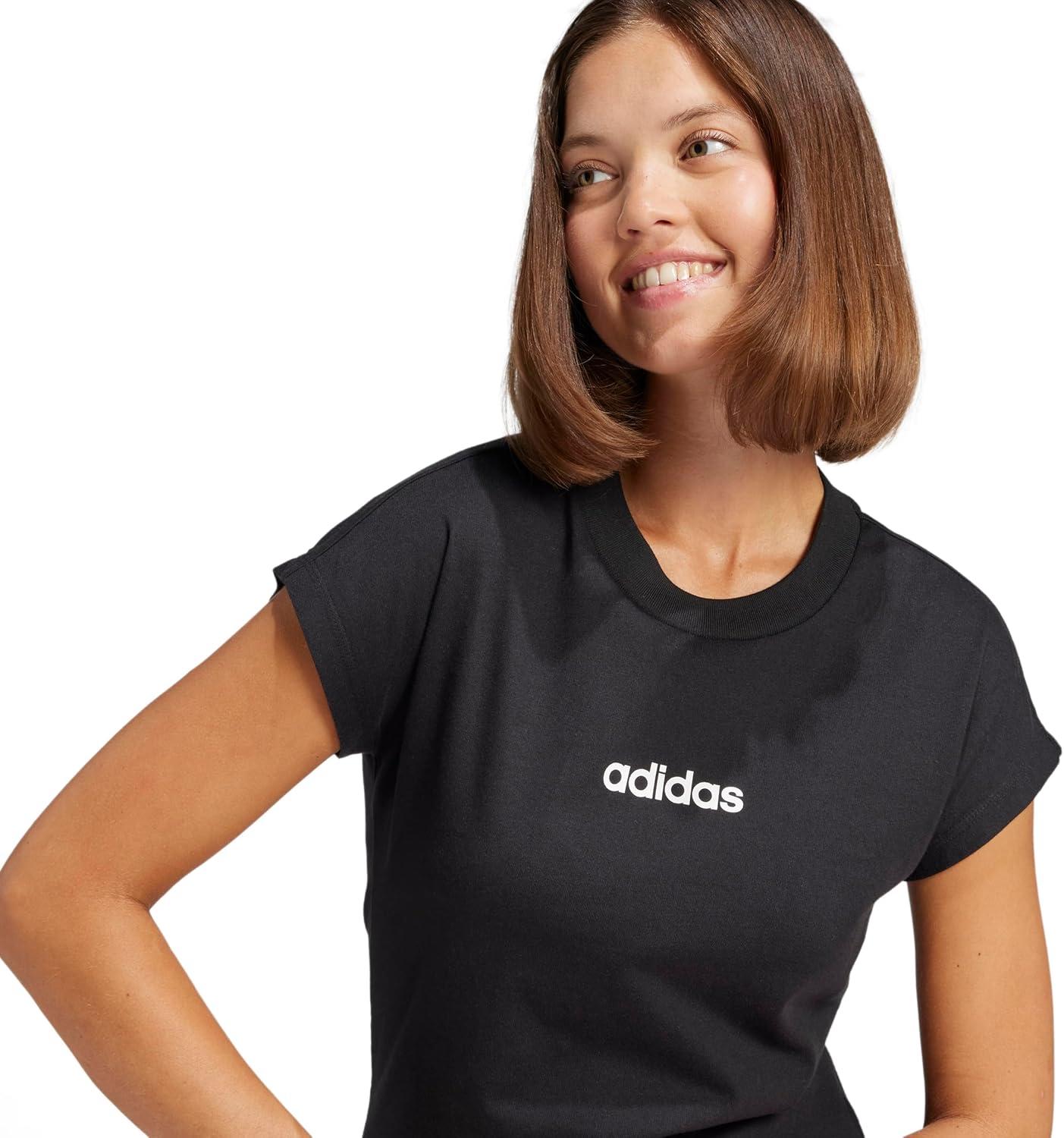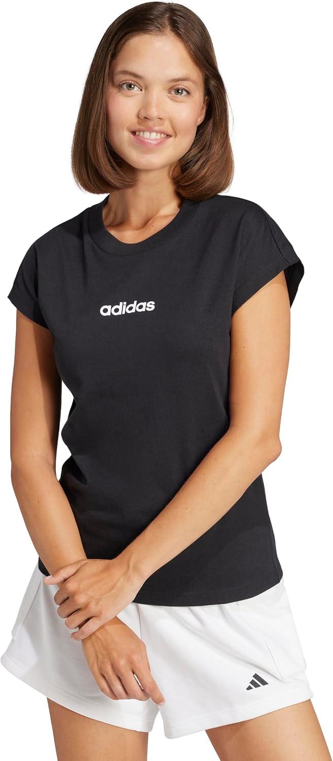 adidas Womens Essentials Linear Cotton T-Shirt(Black/White)