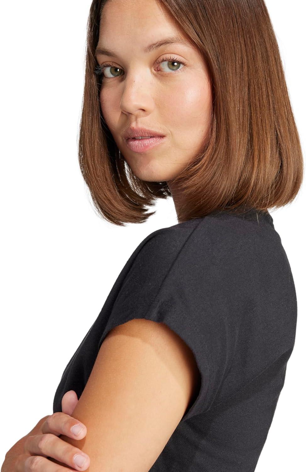 An everyday staple with athletic flair. This women's adidas Essentials t-shirt lets you move through your day in comfort and sport-inspired style. The soft cotton build pairs perfectly with joggers or jeans. A linear adidas logo on the front and a flattering slim fit add a modern edge to this casual classic.