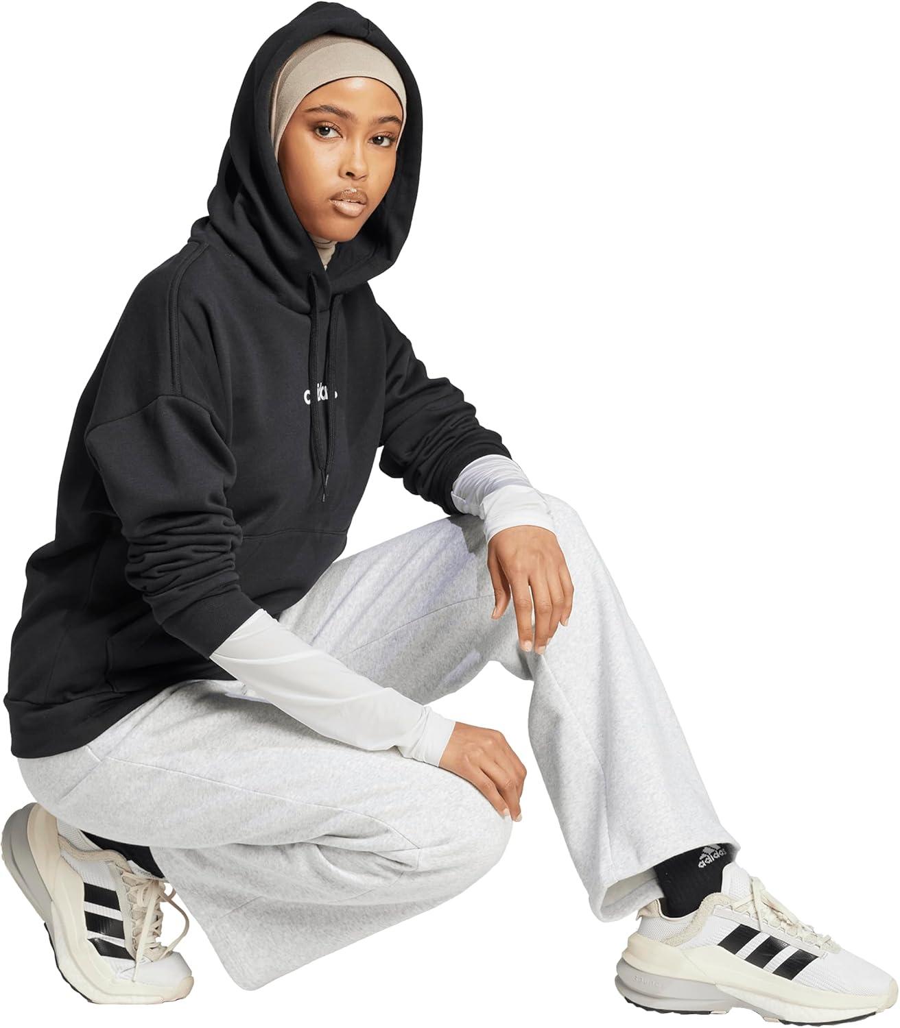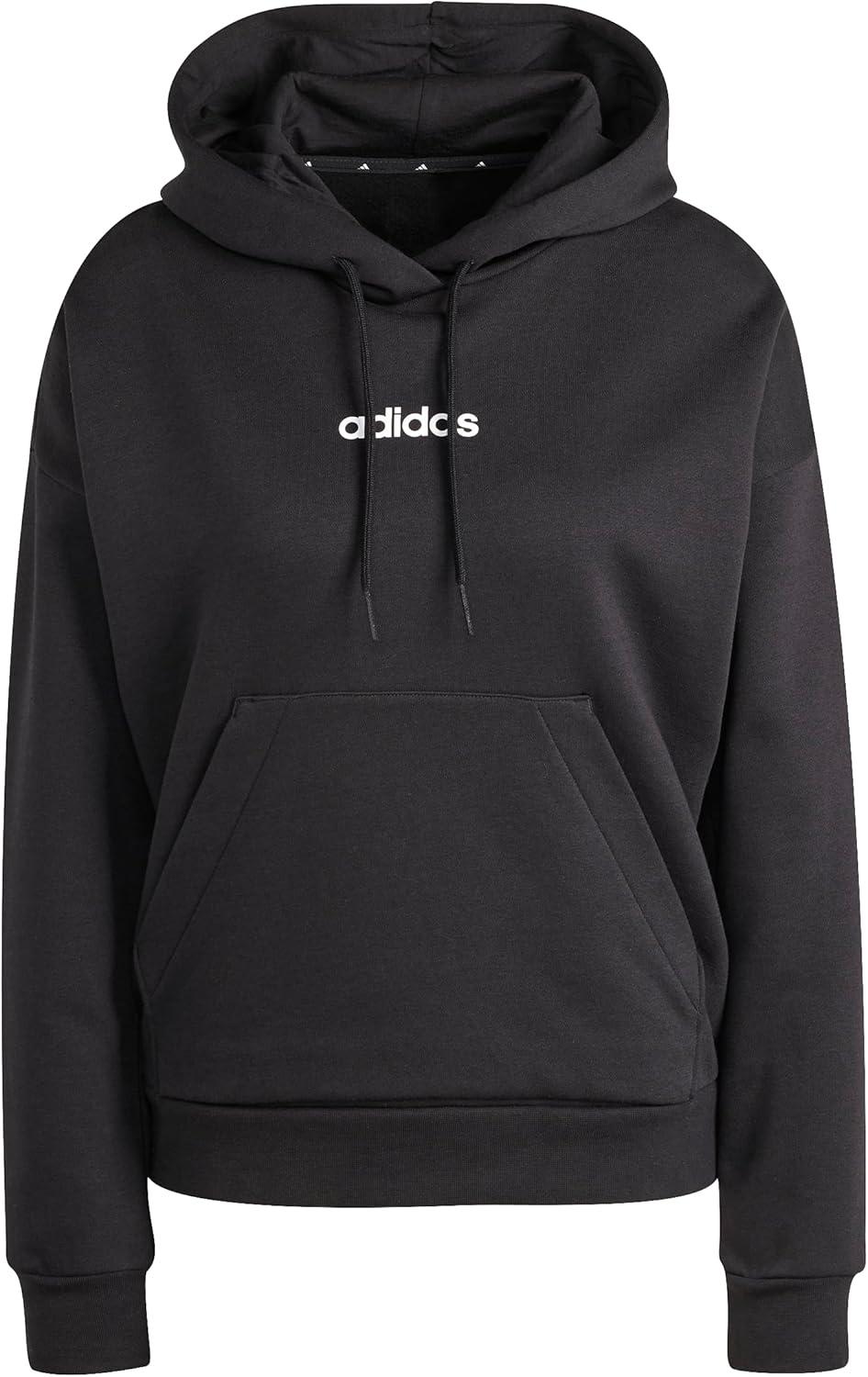 adidas Women’s Essentials Linear Fleece Hoodie(Black/White)