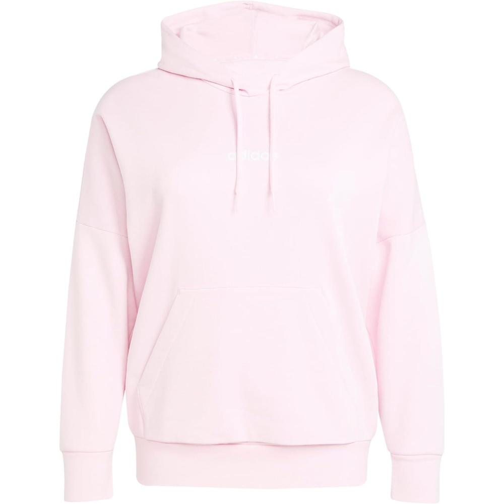 adidas Women’s Essentials Linear Fleece Hoodie(Clear Pink/White)