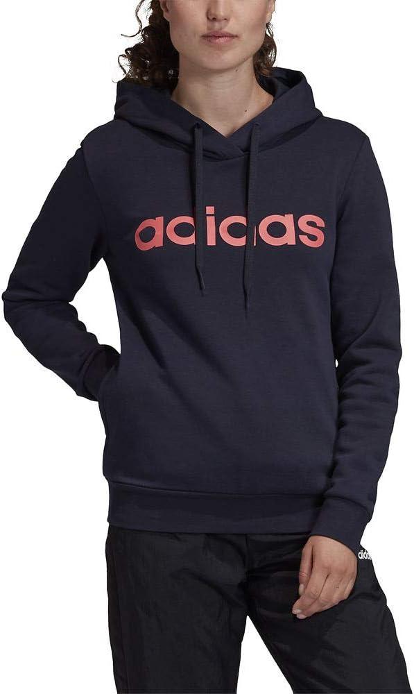 adidas Women’s Essentials Linear Fleece Hoodie(Legend Ink/Signal Pink)