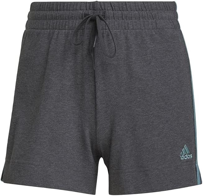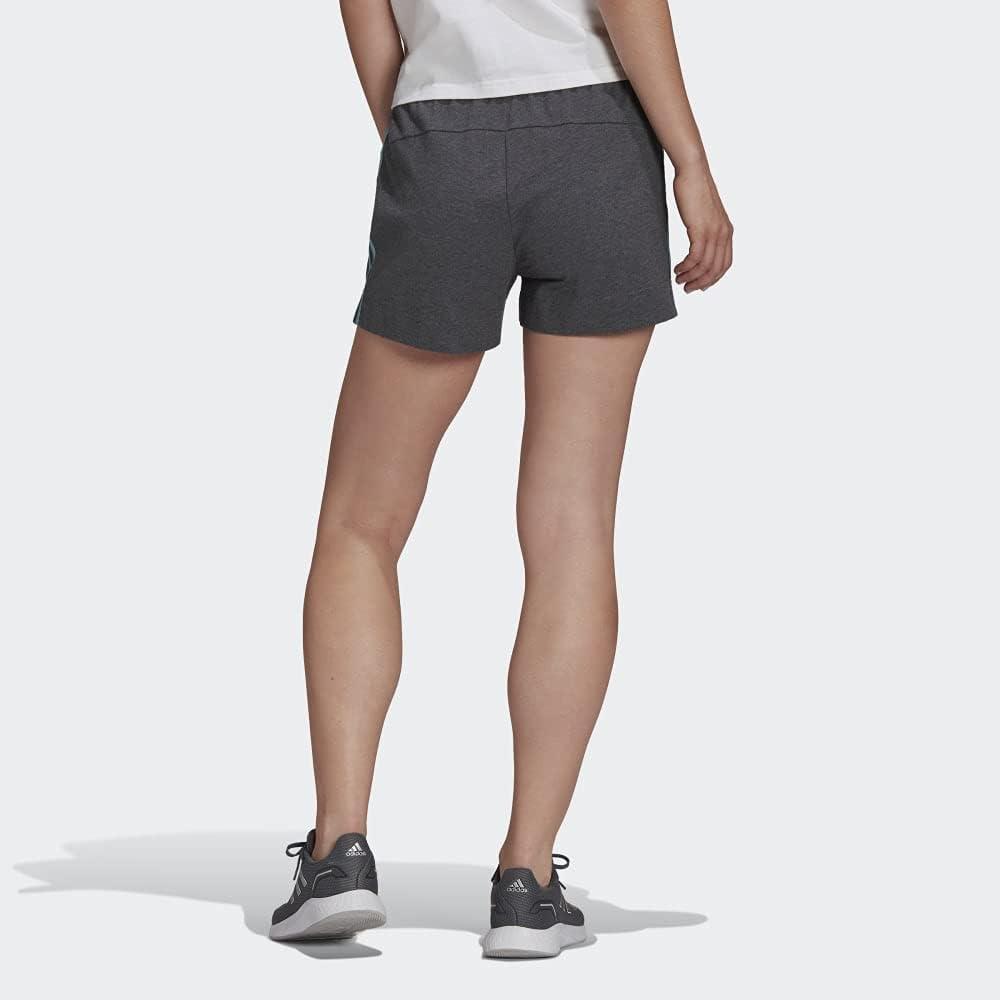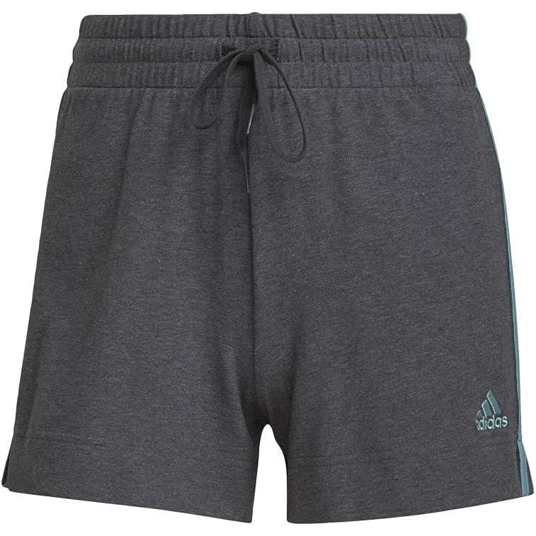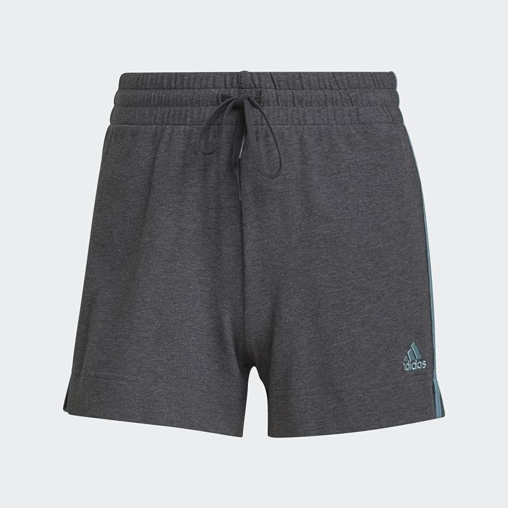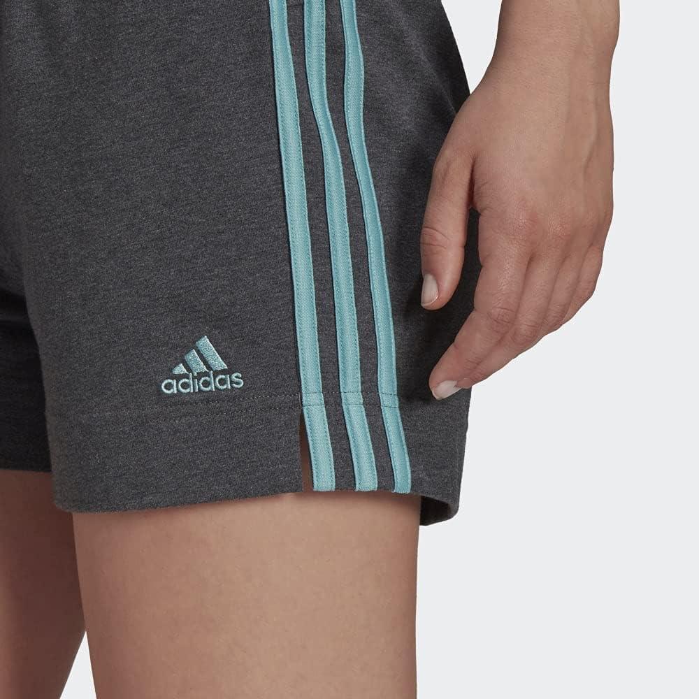 adidas Women’s Essentials Slim 3-Stripes Shorts(Dark Grey Heather/Mint Ton)