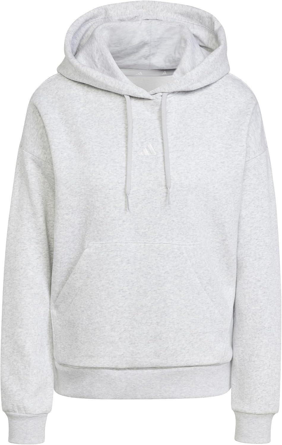 adidas Women’s Essentials Small Logo Feelcozy Hoodie(Light Grey Heather/White)