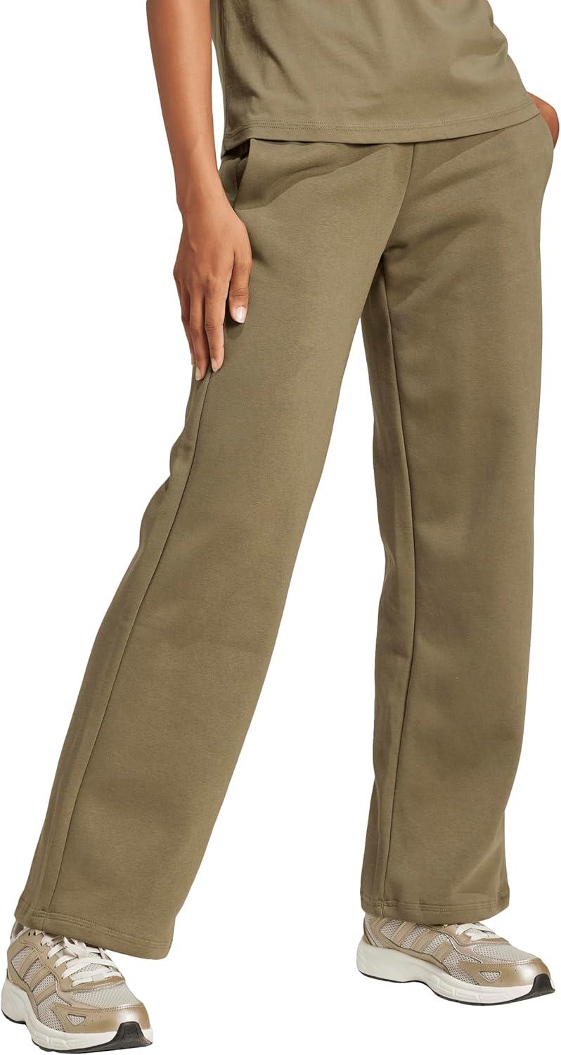 adidas Womens Essentials Small Logo Feelcozy Open Hem Pants(Olive Strata/White)