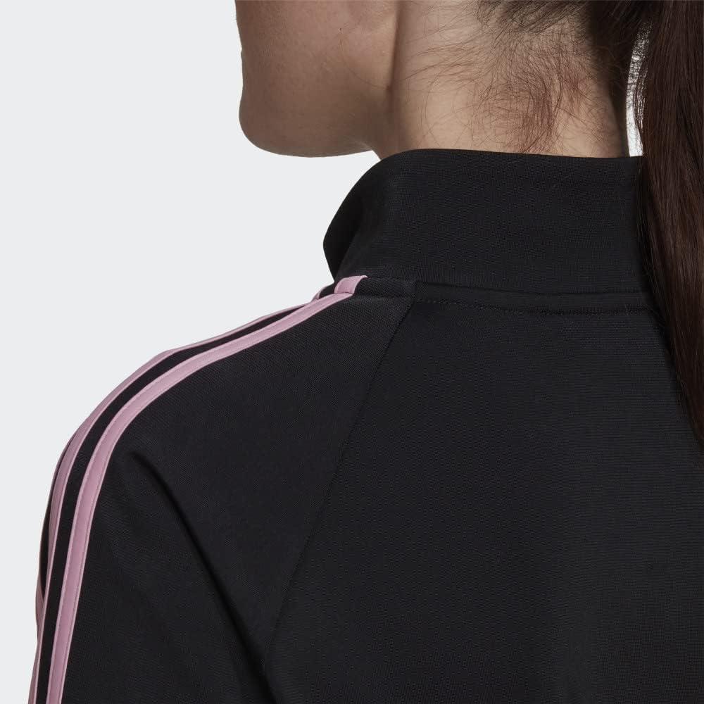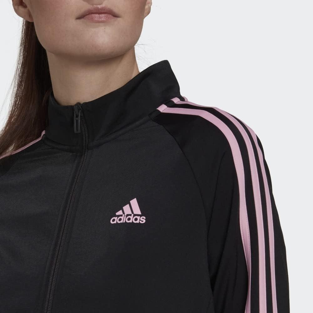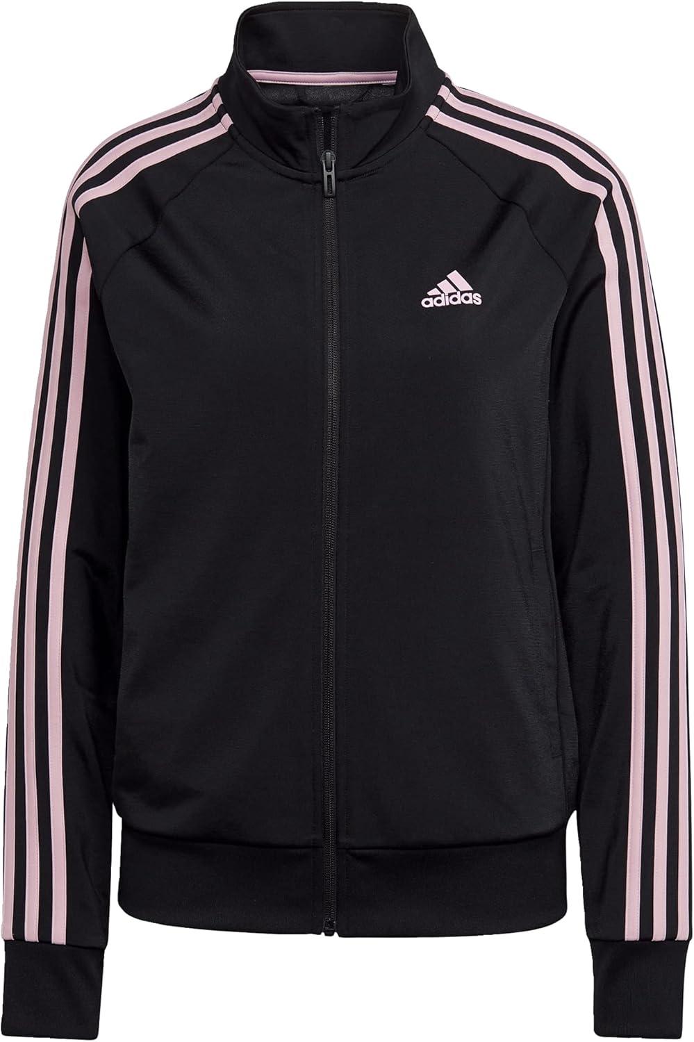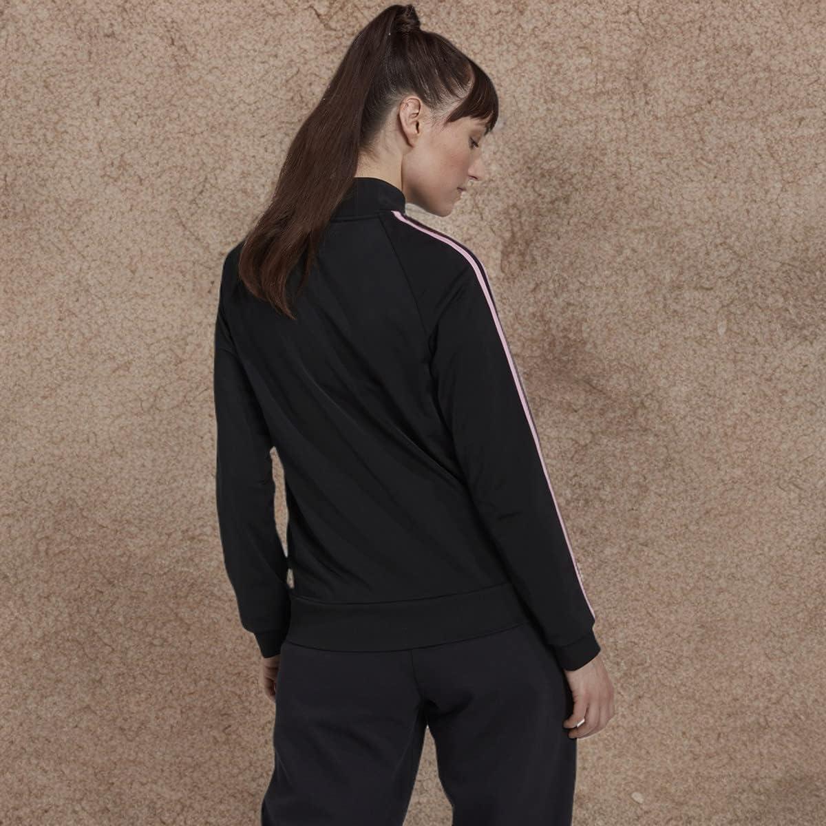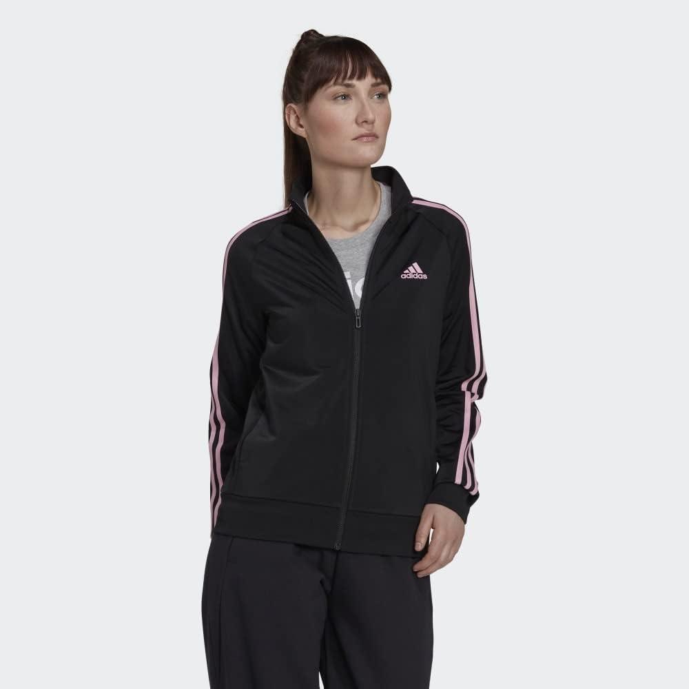 adidas Women’s Essentials Warm-Up Slim 3-Stripes Track Jacket(Black-true Pink)
