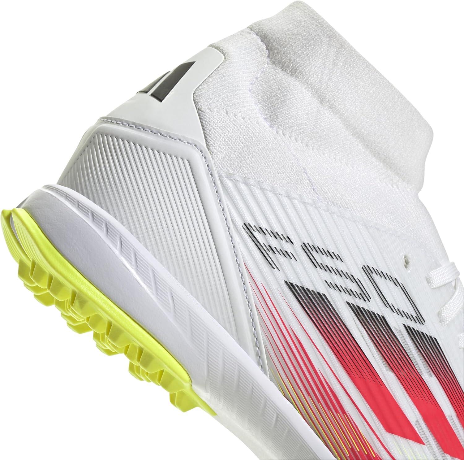 adidas Women’s F50 League Mid Top Turf Sneaker(Cloud White Lucid Red Solar Yellow)
