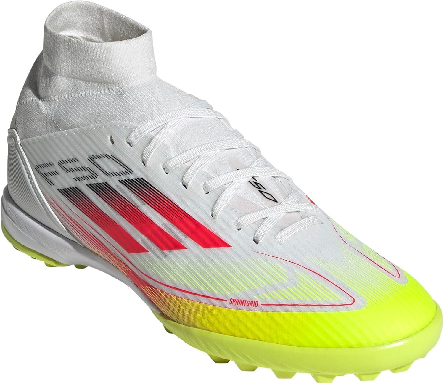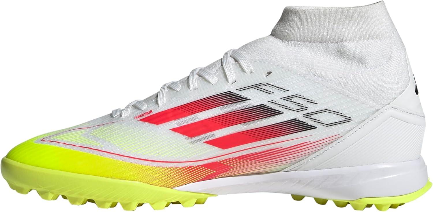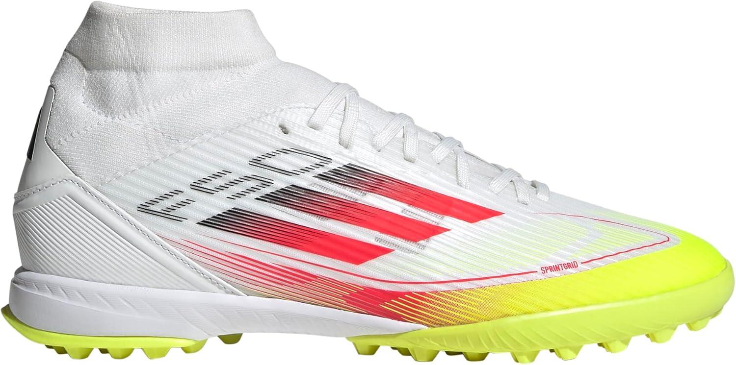 adidas Women’s F50 League Mid Top Turf Sneaker(White/Lucid Red/Solar Yellow)