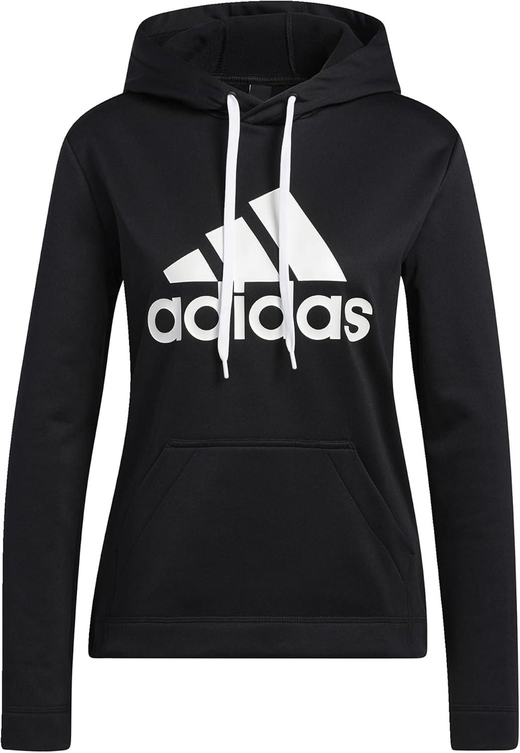 Stay warm on your way to the gym in this women's fleece hoodie. Moisture-absorbing AEROREADY keeps you comfy after you're done. Shimmery ink on the adidas Badge of Sport catches the light when the sun finally shows up for real.