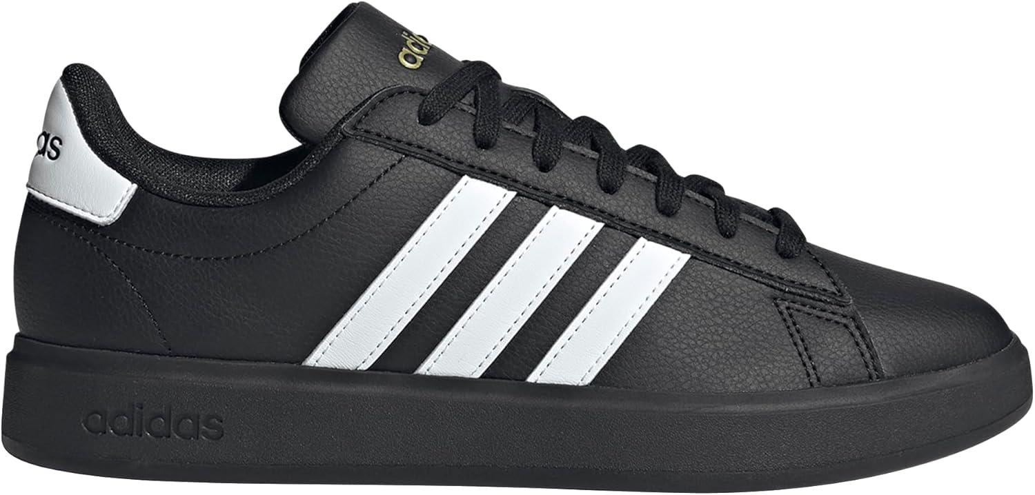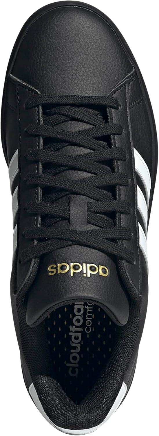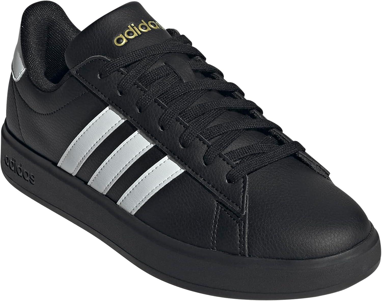adidas Women’s Grand Court 2.0 Tennis Shoe(Black/White/Gold Metallic)