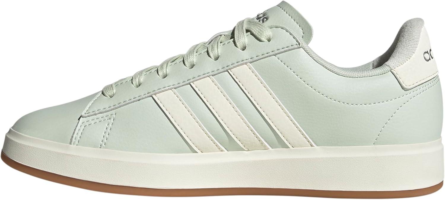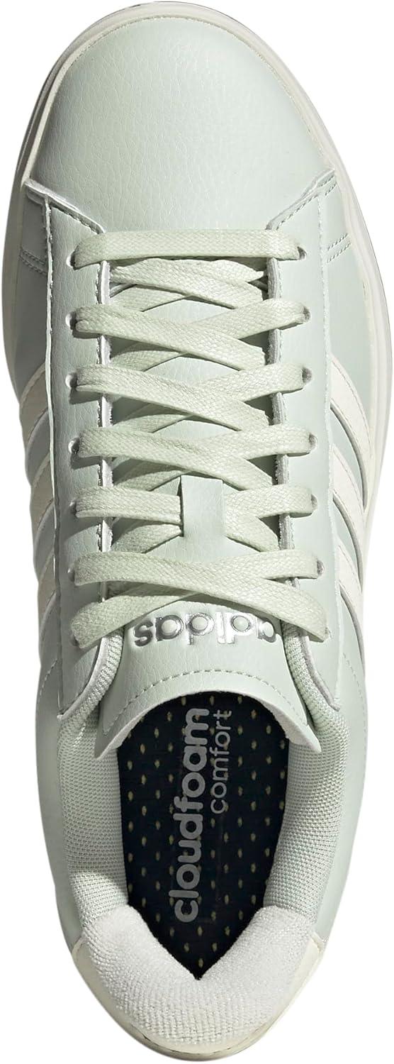 adidas Women’s Grand Court 2.0 Tennis Shoe(Linen Green/Off White/Silver Metallic)