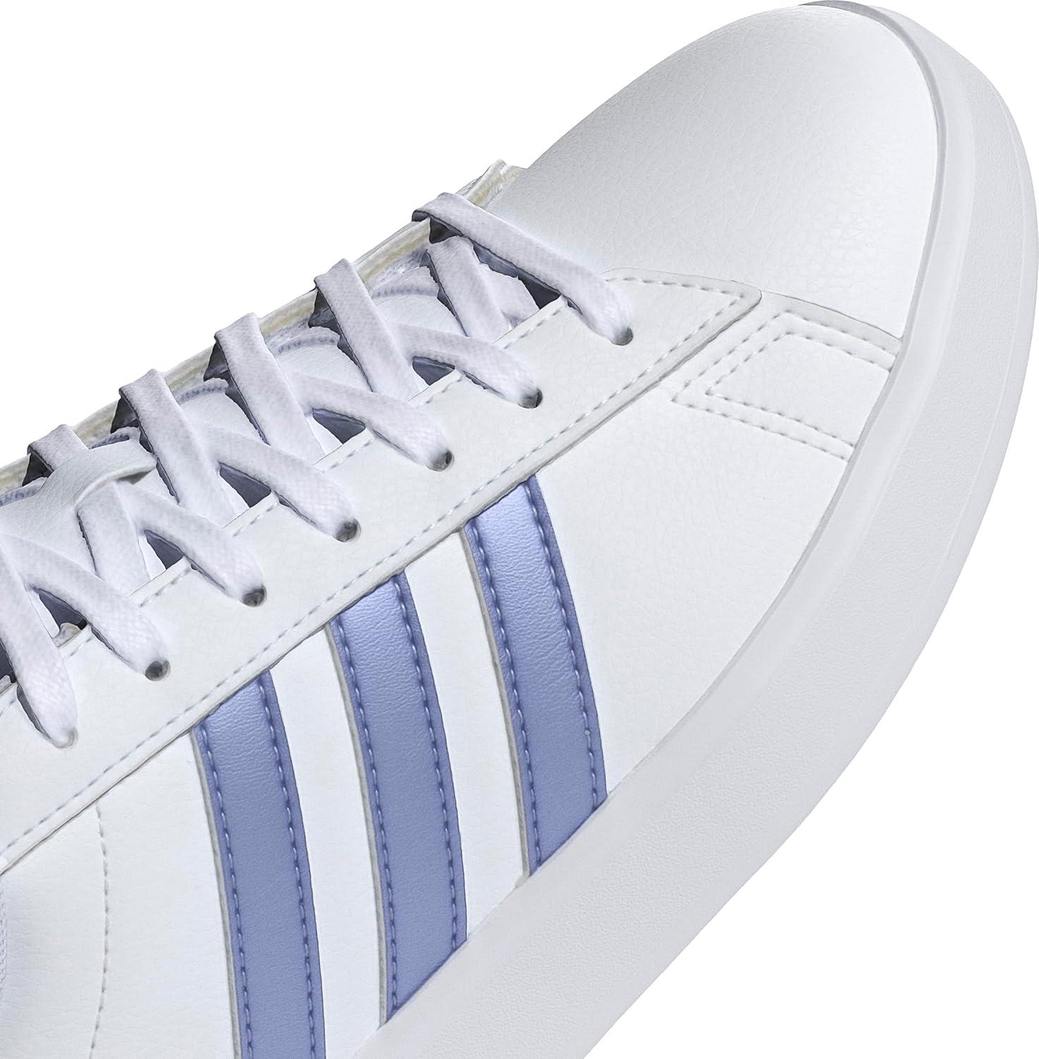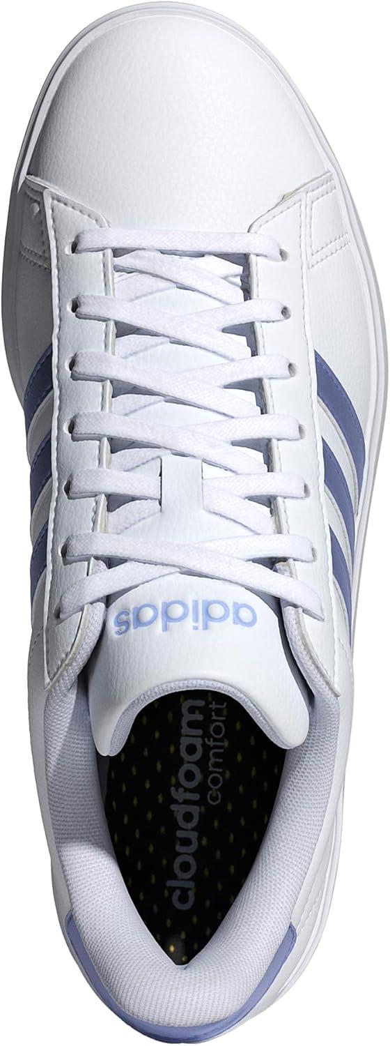 adidas Women’s Grand Court 2.0 Tennis Shoe(White/Blue Spark Met./Blue Spark)