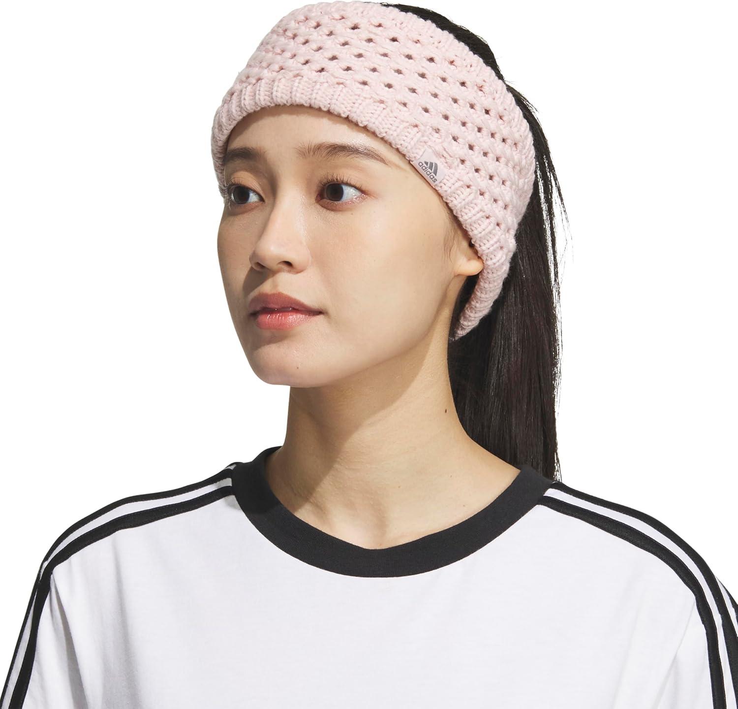 adidas Women’s Lifestyle Fuzzy Knit Headband – Soft Winter Ear Warmer(Crestline/Sandy Pink/Grey Three)