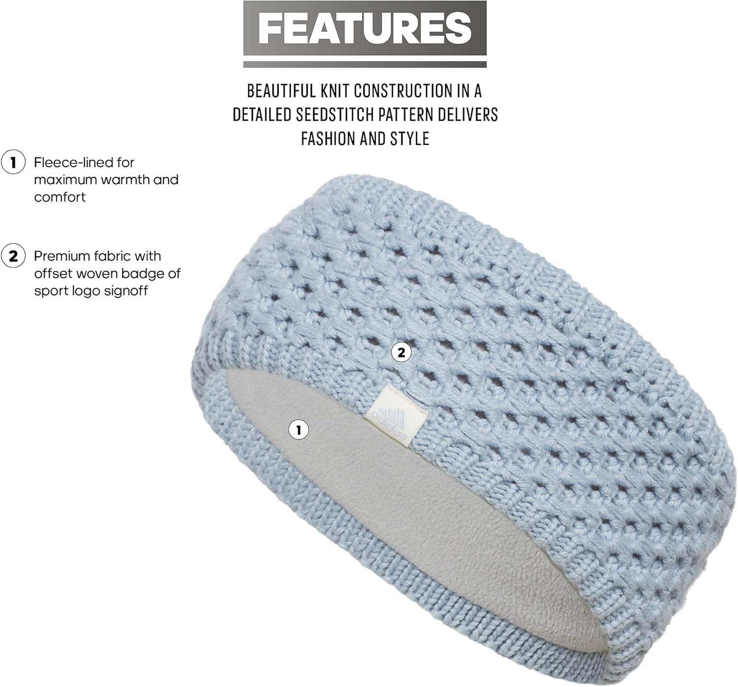adidas Women’s Lifestyle Fuzzy Knit Headband – Soft Winter Ear Warmer(Crestline/Wonder Blue/Wonder White)