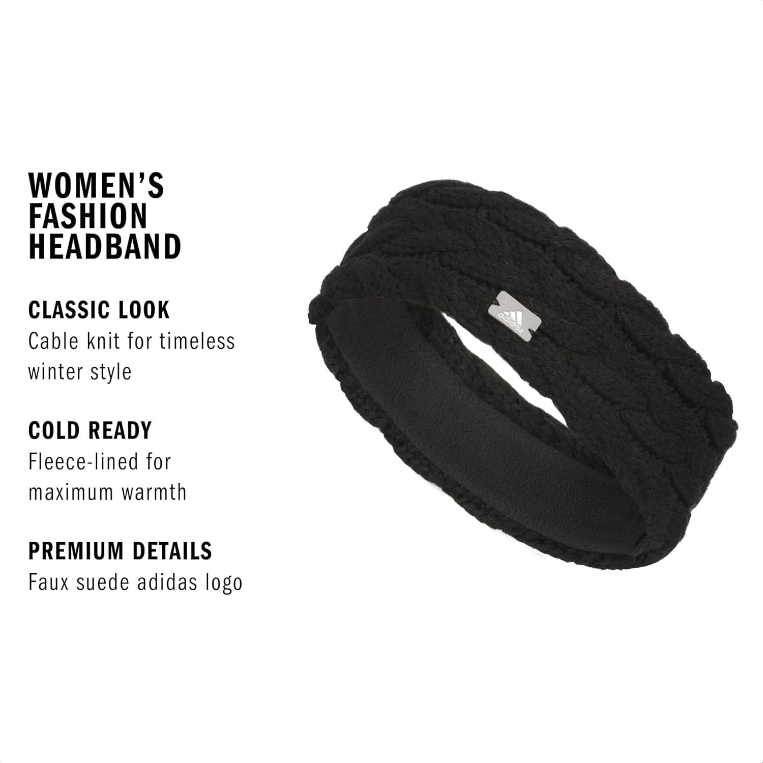 adidas Women’s Lifestyle Fuzzy Knit Headband – Soft Winter Ear Warmer(Fashion/Black/Grey/Silver Metallic F23)
