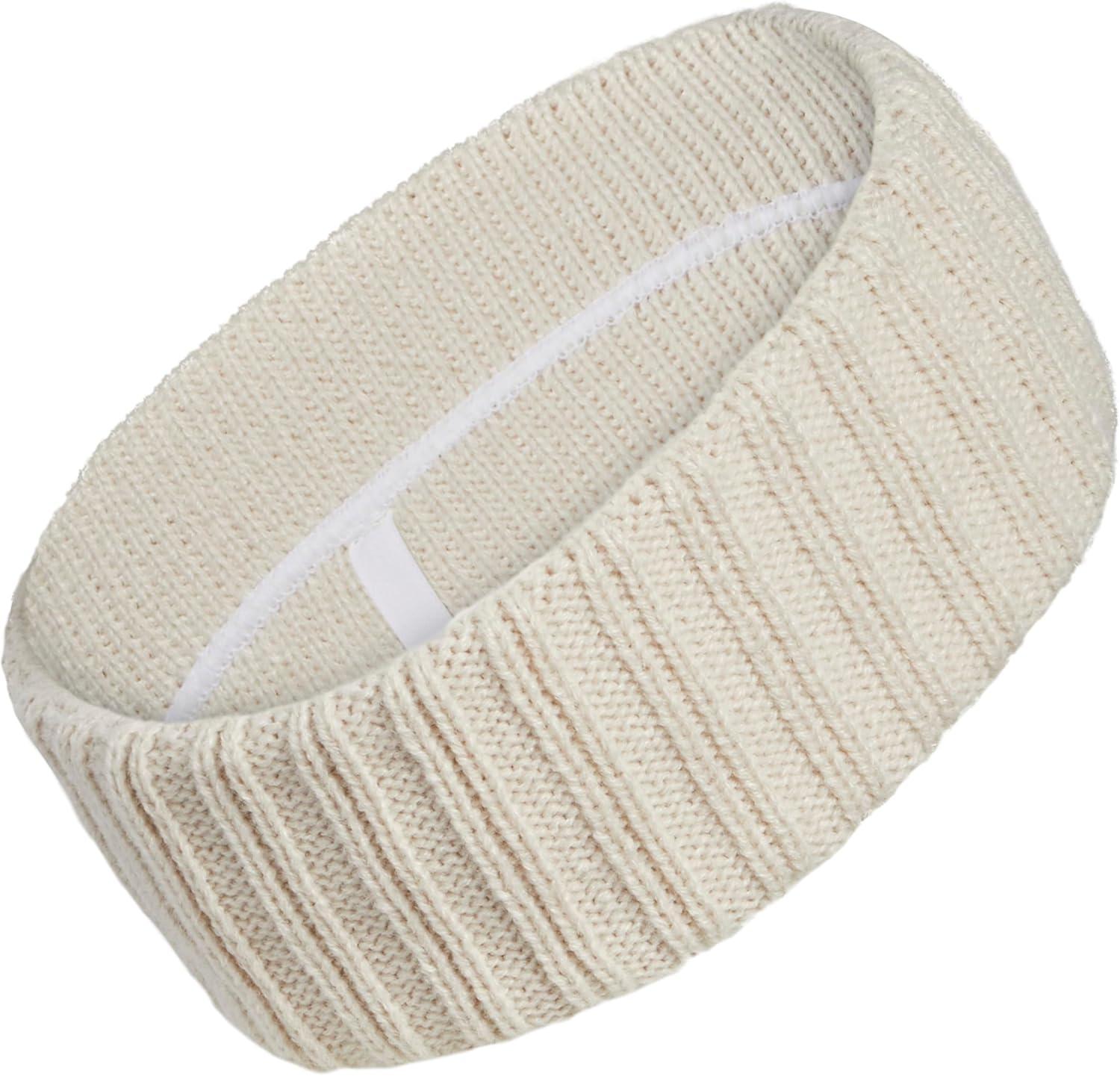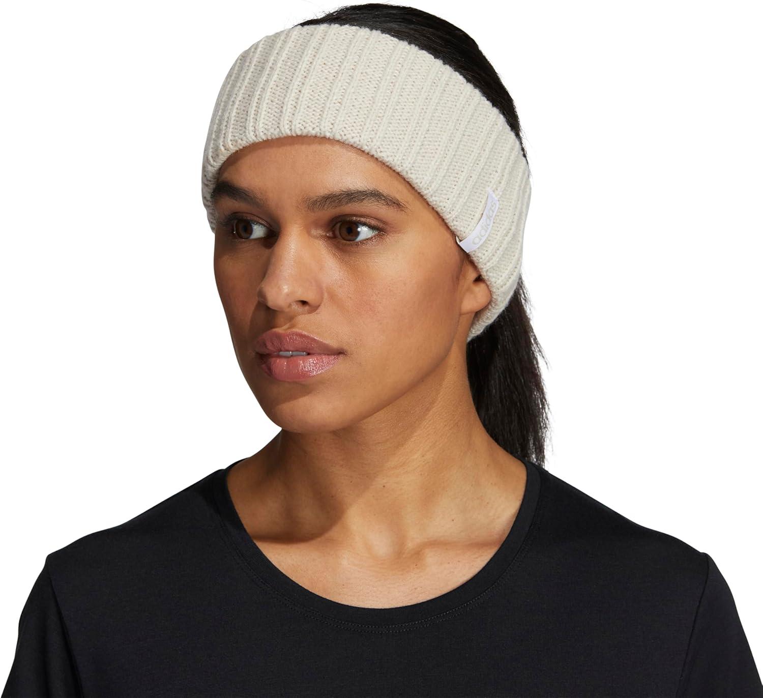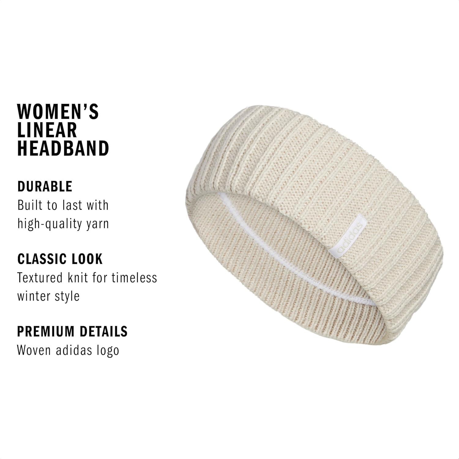 adidas Women’s Lifestyle Fuzzy Knit Headband – Soft Winter Ear Warmer(Linear/Alumina Beige/White)