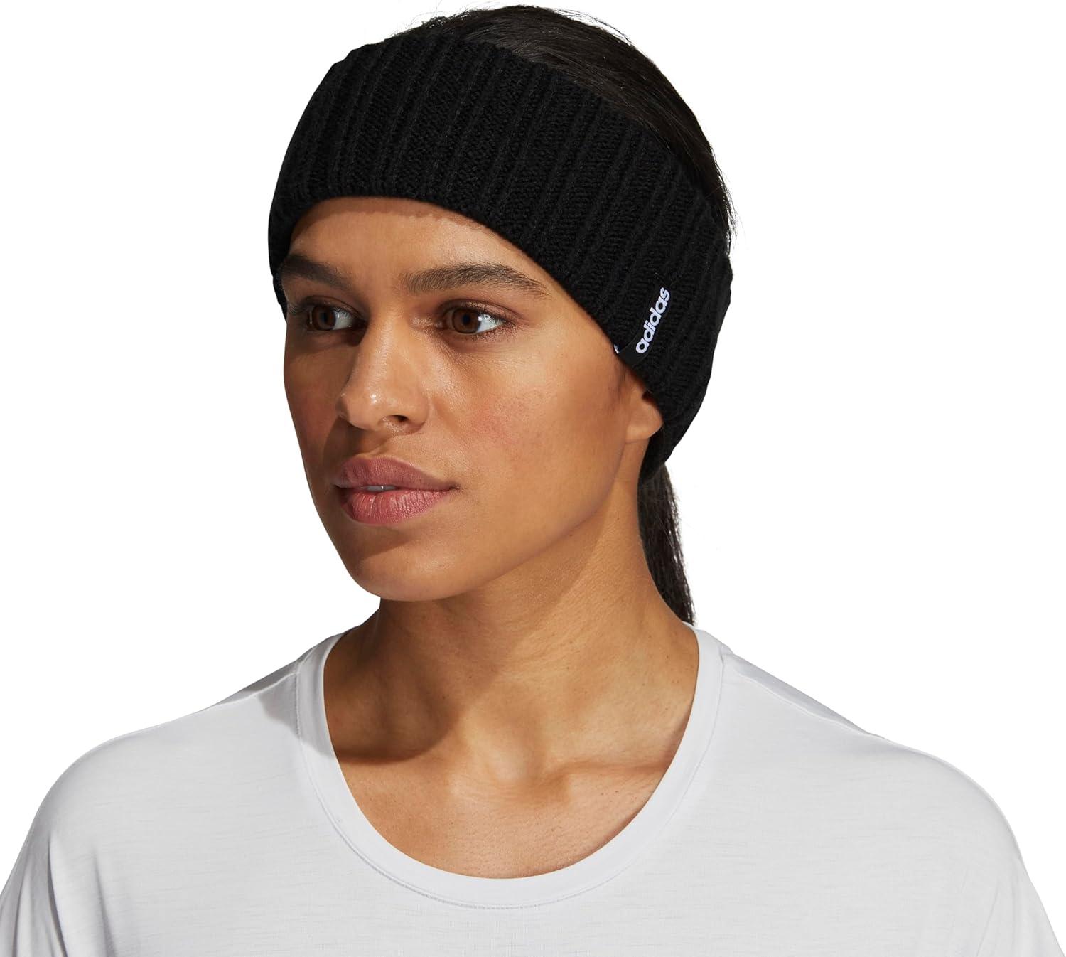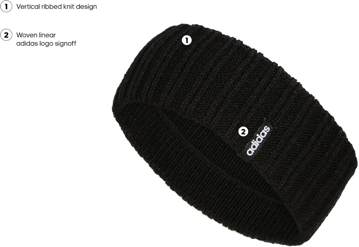 adidas Women’s Lifestyle Fuzzy Knit Headband – Soft Winter Ear Warmer(Linear/Black F22)